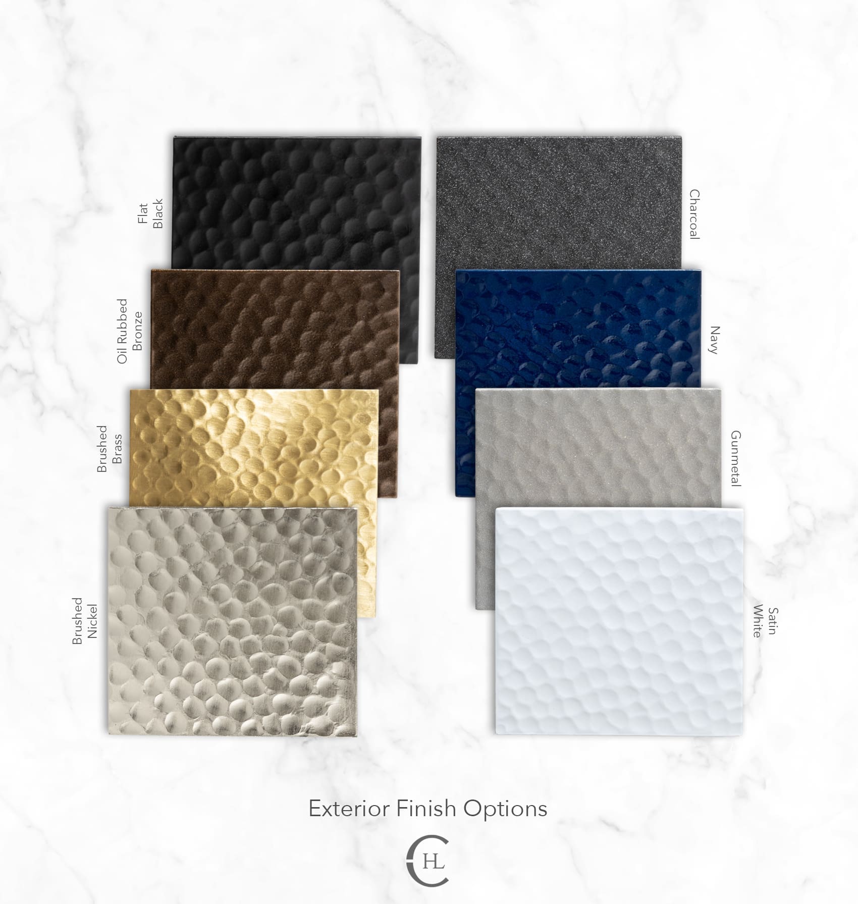 Can’t decide what finish would best fit your space? Pick up our mini hammered sample and take it for a spin in your kitchen, office or restaurant to see how it will compliment its future home.