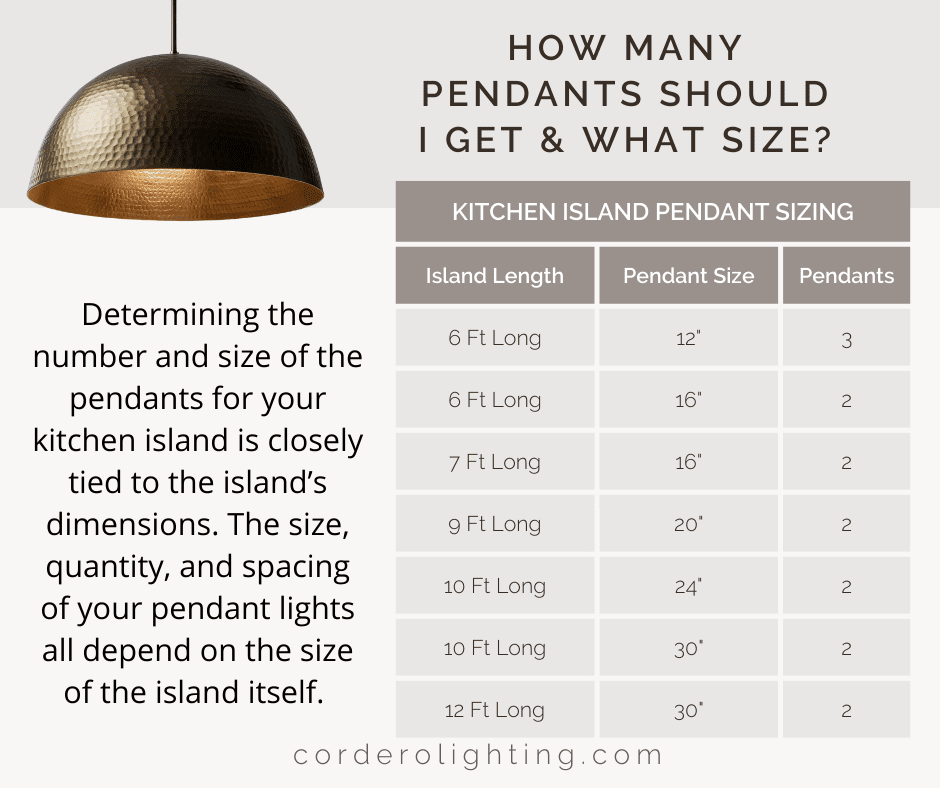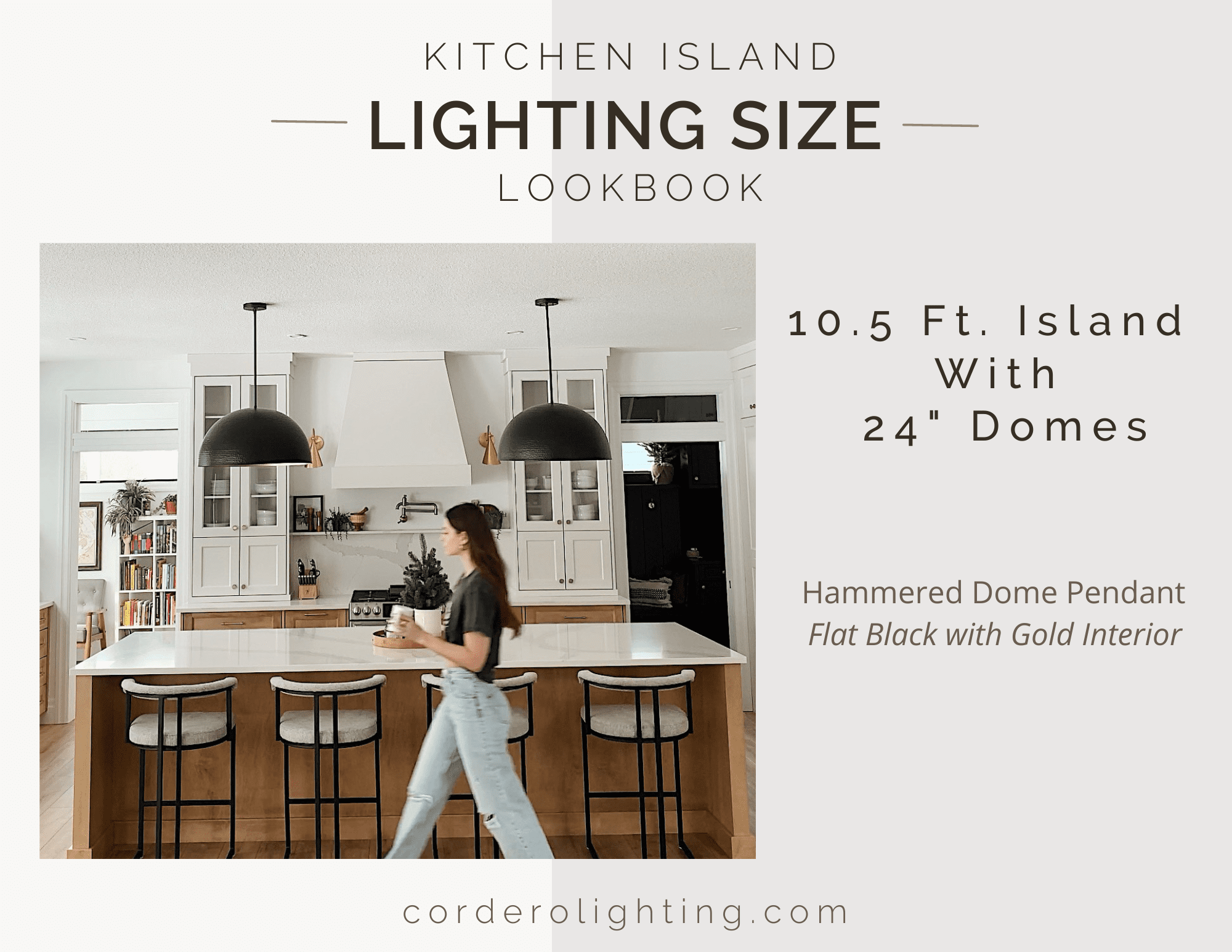 Remember, these are just general guidelines to help you get started with choosing the right size lighting fixtures! Our advice is to pick pendants that are big enough for your island (see chart above) and go from there. Do the math, visualize and see if it fits! But ultimately, get the pendants that you LOVE! Our CHL team is here to help in any way we can, shoot us a message if you have questions at hello@corderolighting.com