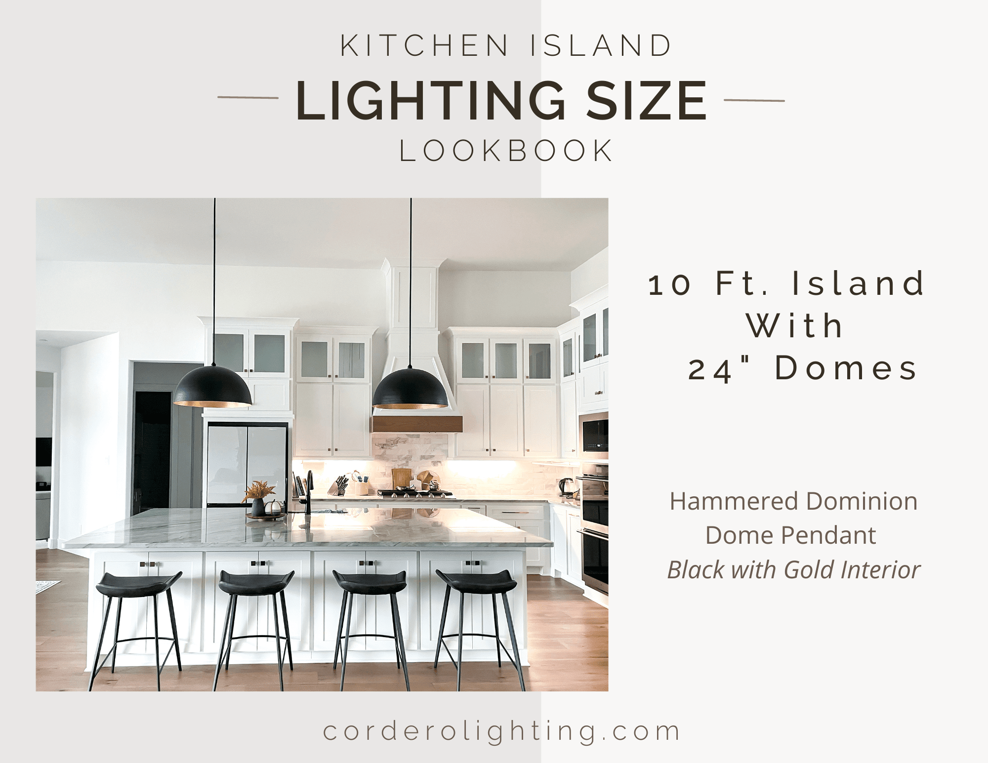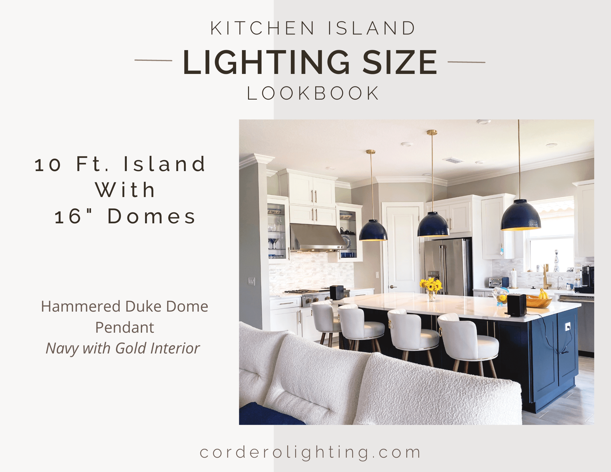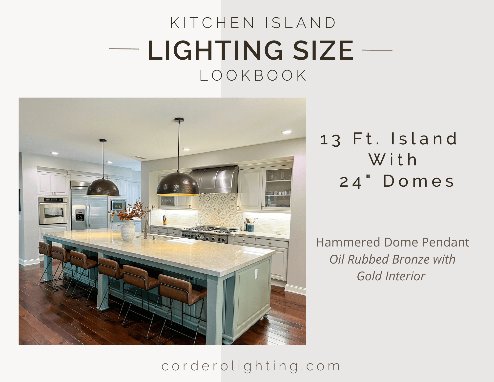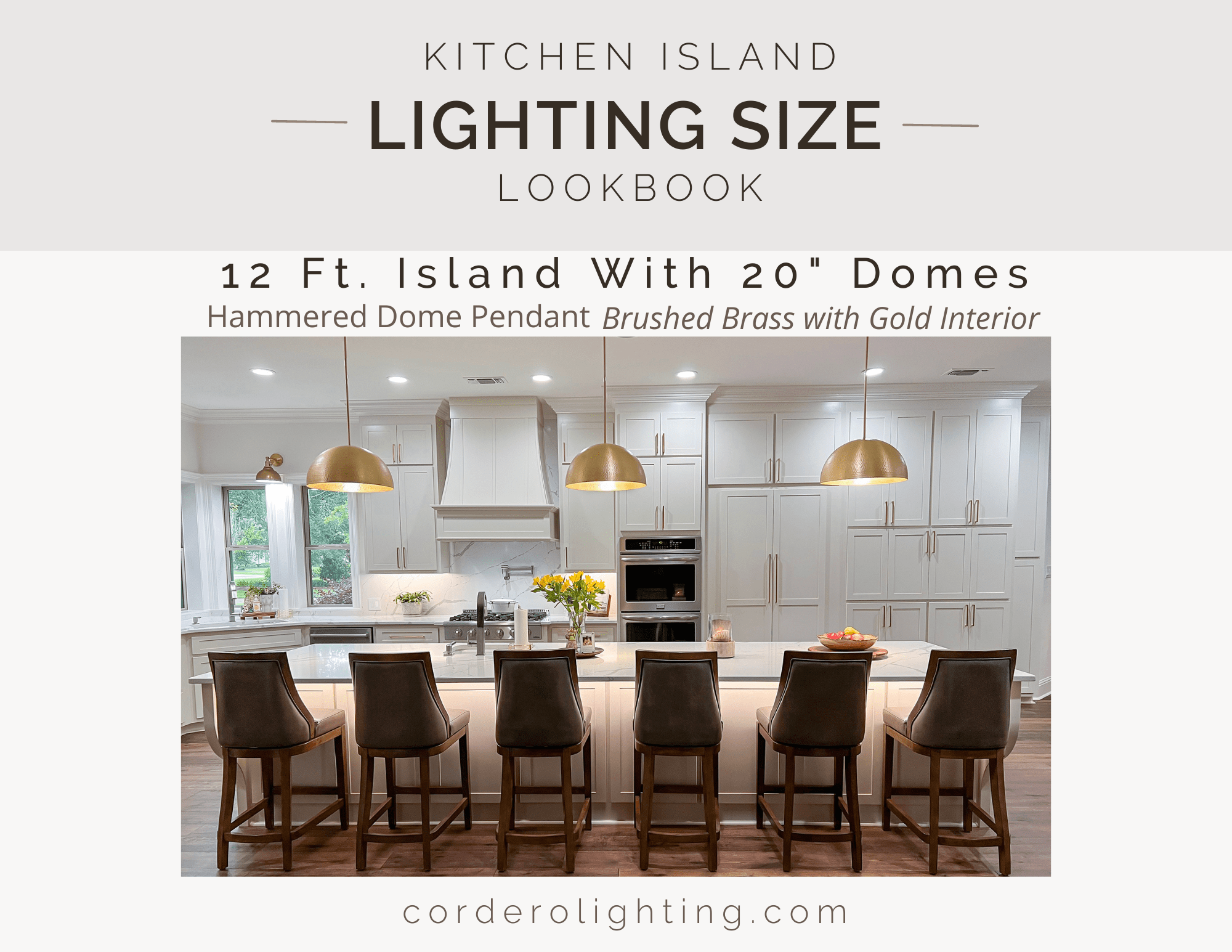 Take a look through some of our client’s kitchens with different island sizes. There is no right answer. There is no right math. Use our advice as guidelines to make the best selection for your space! Need more inspiration? Take a look at our Dome Lighting Finishes Guide and shop our Cordero Handcrafted Dome Light Fixtures.