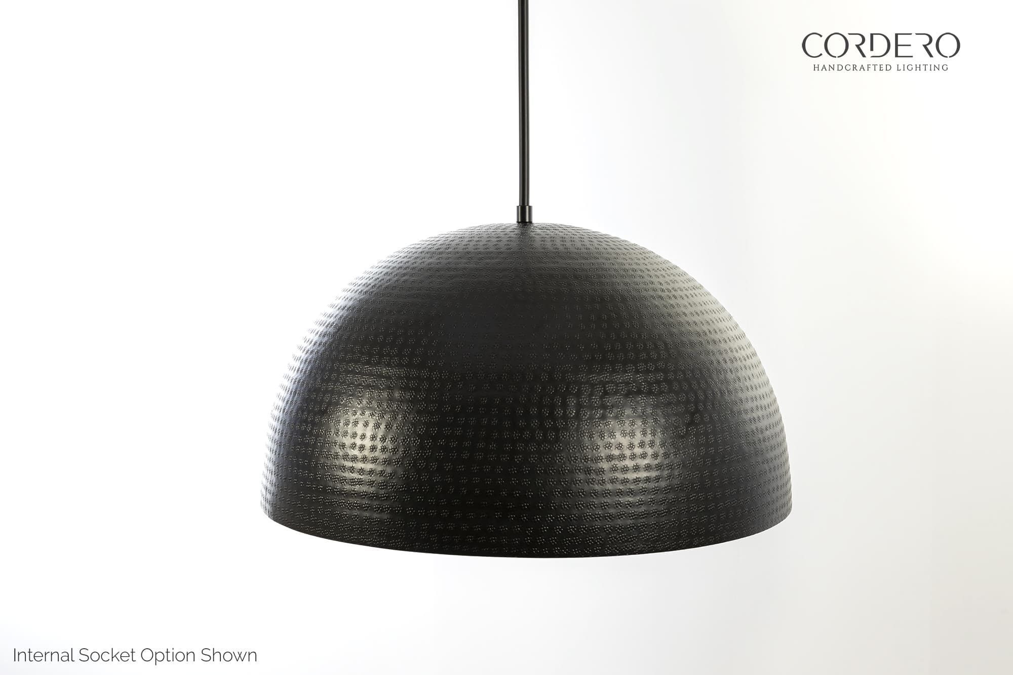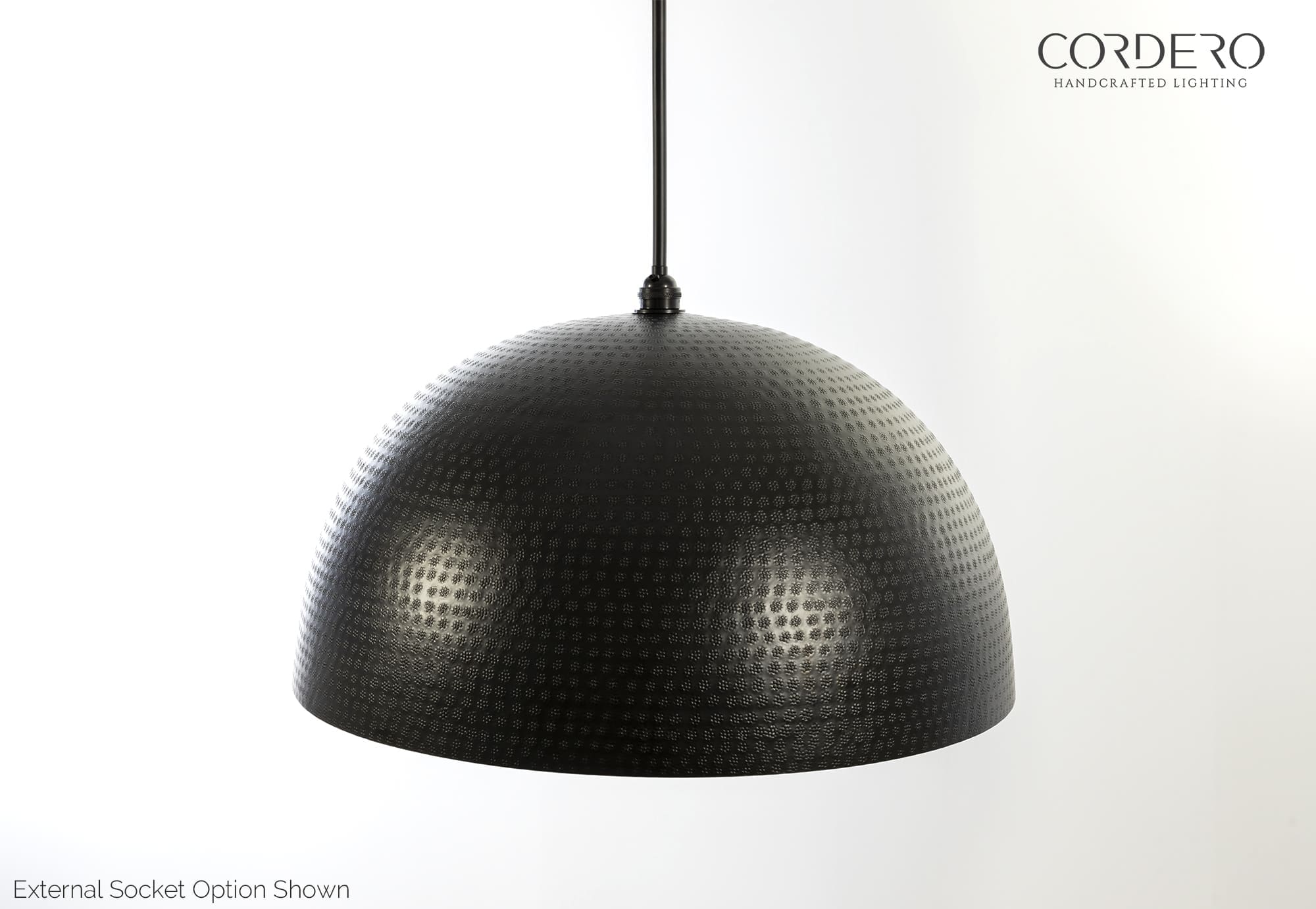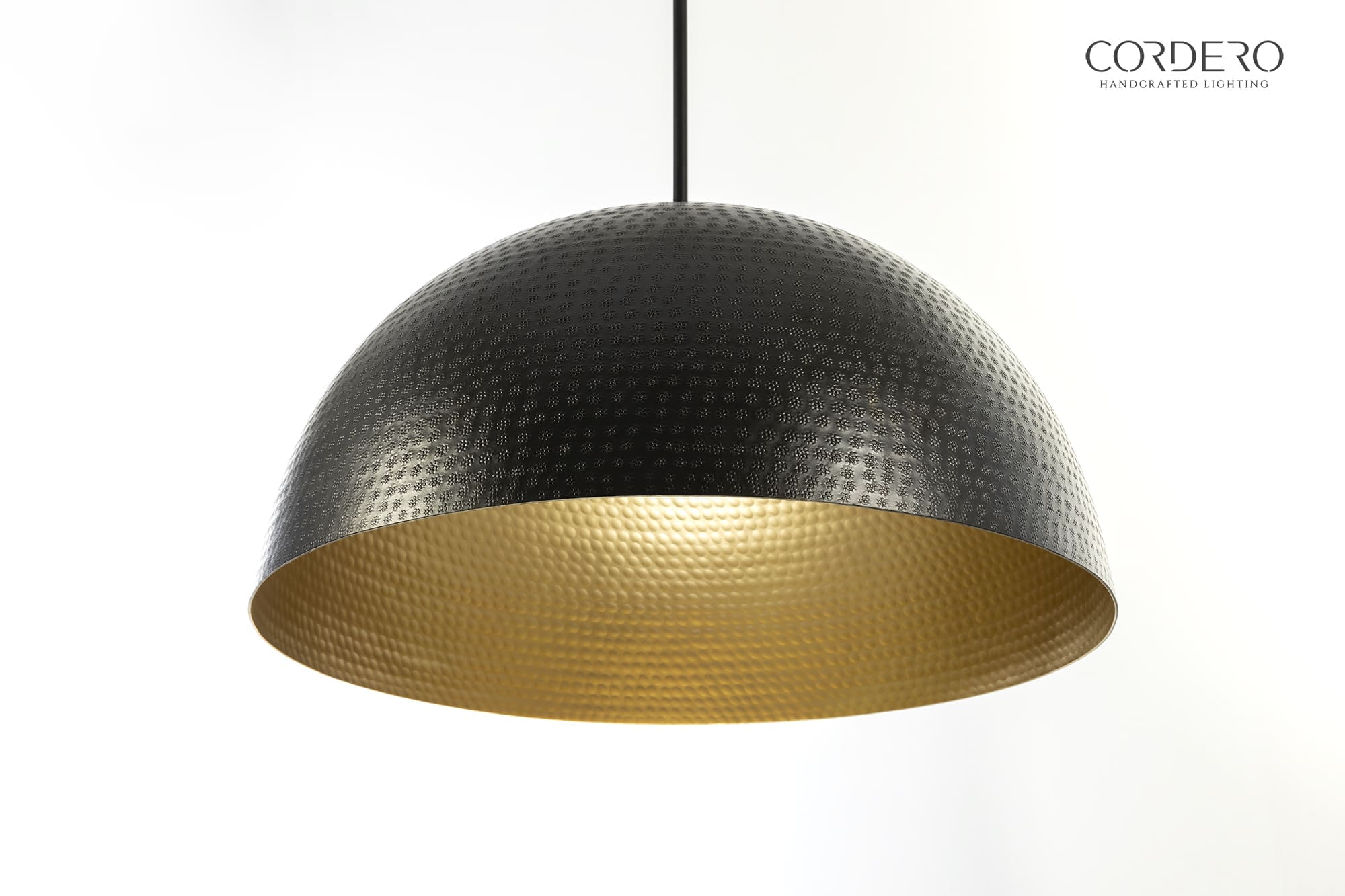 With brilliant metallic curves and rich hand-hammered texture, the Black Dominion Hammered Dome is an unmistakably bold yet elegant lighting statement ready to complement your next home or business. The Dominion’s form and finish create a radiant glow that swims around the hammered interior then gently spills across your dining table or home setting. Elevate your next space with this resplendence mix of beauty and function.
