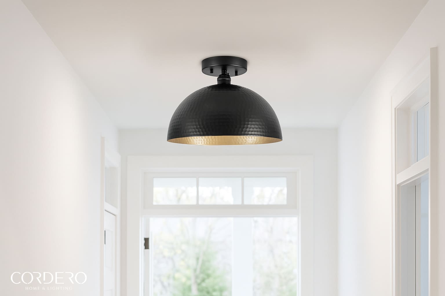 Whether you’re installing a single statement light or pairing multiple over an island or down a hallway, the Black Hammered Dome brings artisan craftsmanship and tailored design to every ceiling.
