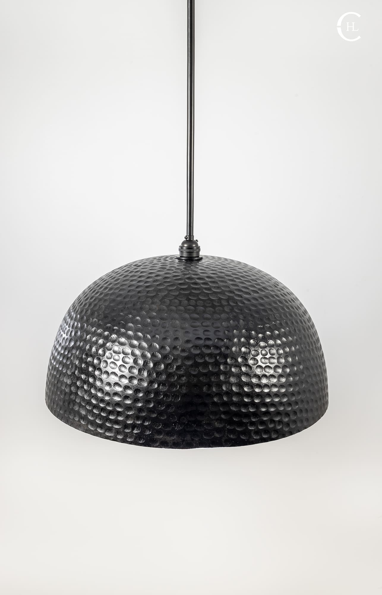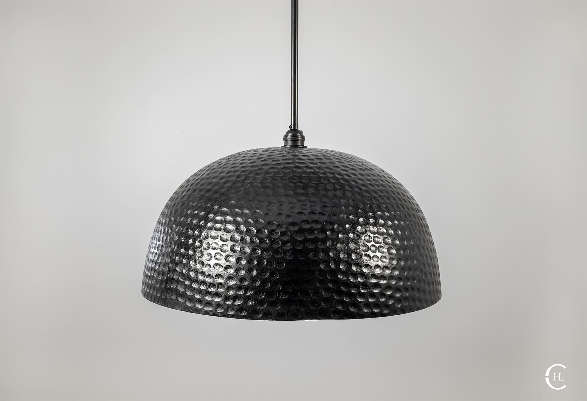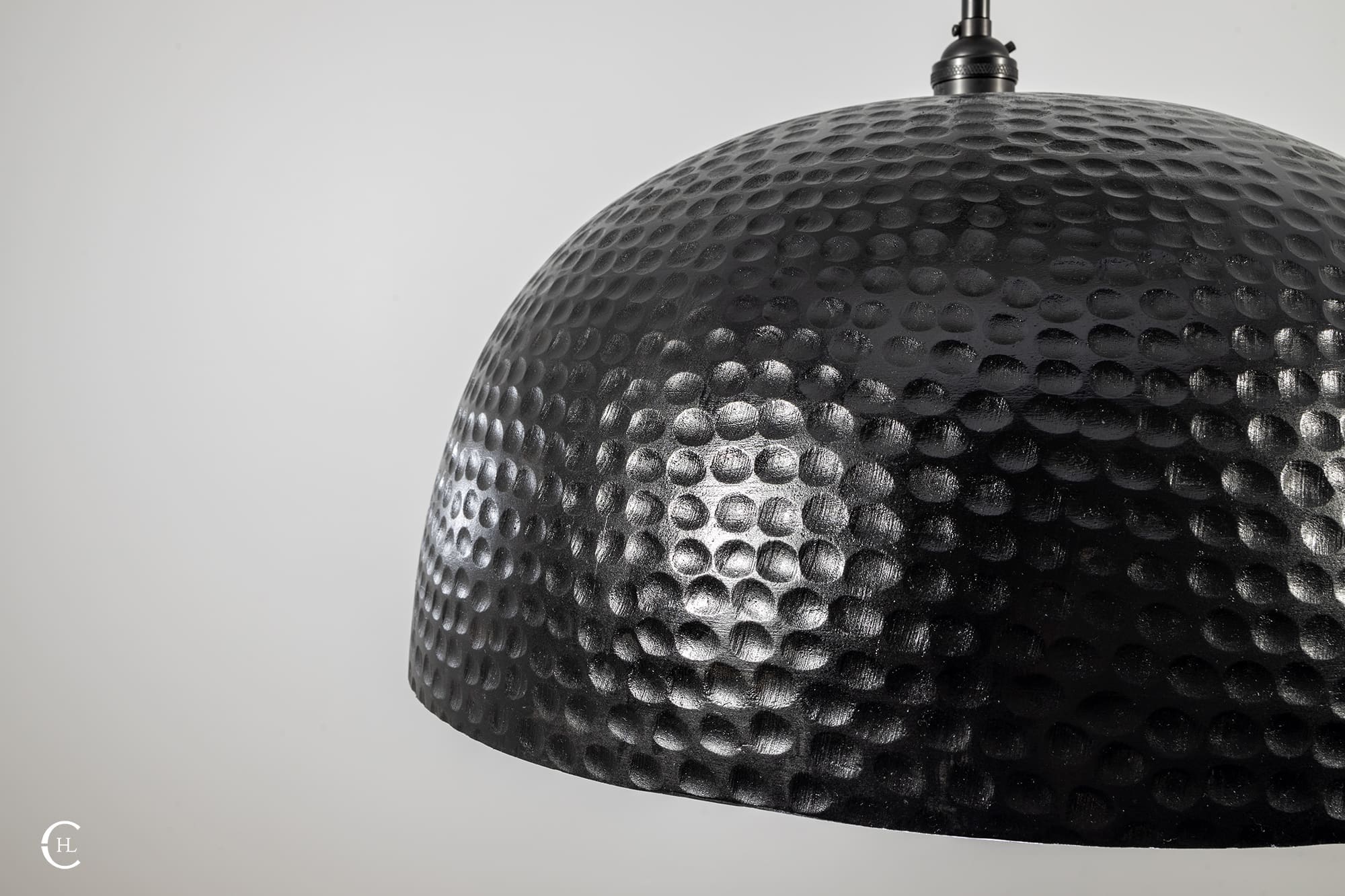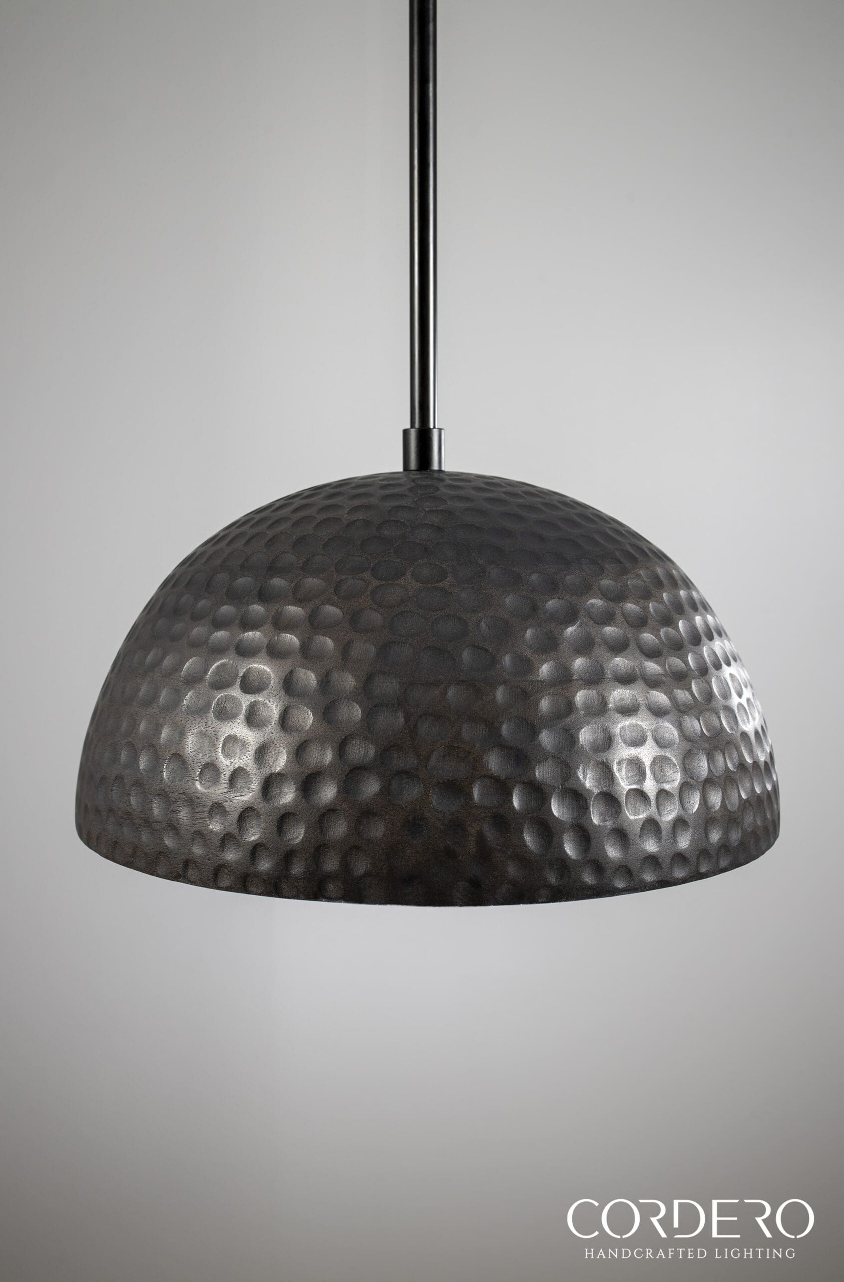Invite the radiance of the natural world into your next indoor space with our Black Wood Hammered Dome Pendant Light. This all-natural Mango hardwood dome features unique variations in woodgrain patterns and hues. Our team of skilled artisans delicately shape the durable Mango wood and hand hammer the full exterior, revealing the ultimate craftsmanship of natural materials. The Black Wood Hammered Dome Pendant Light features a sleek metal rod connecting the fixture’s warm silhouette with a complementary Black-stained wooden canopy. Bring the outdoors as you illuminate your next space with the brilliance of nature.Â
