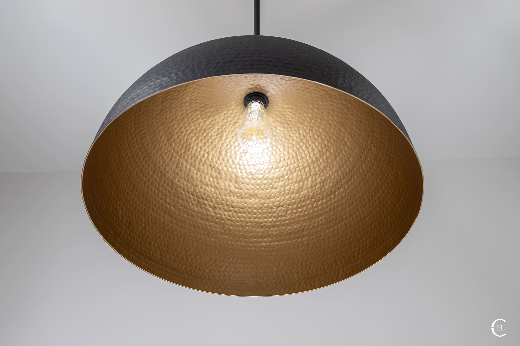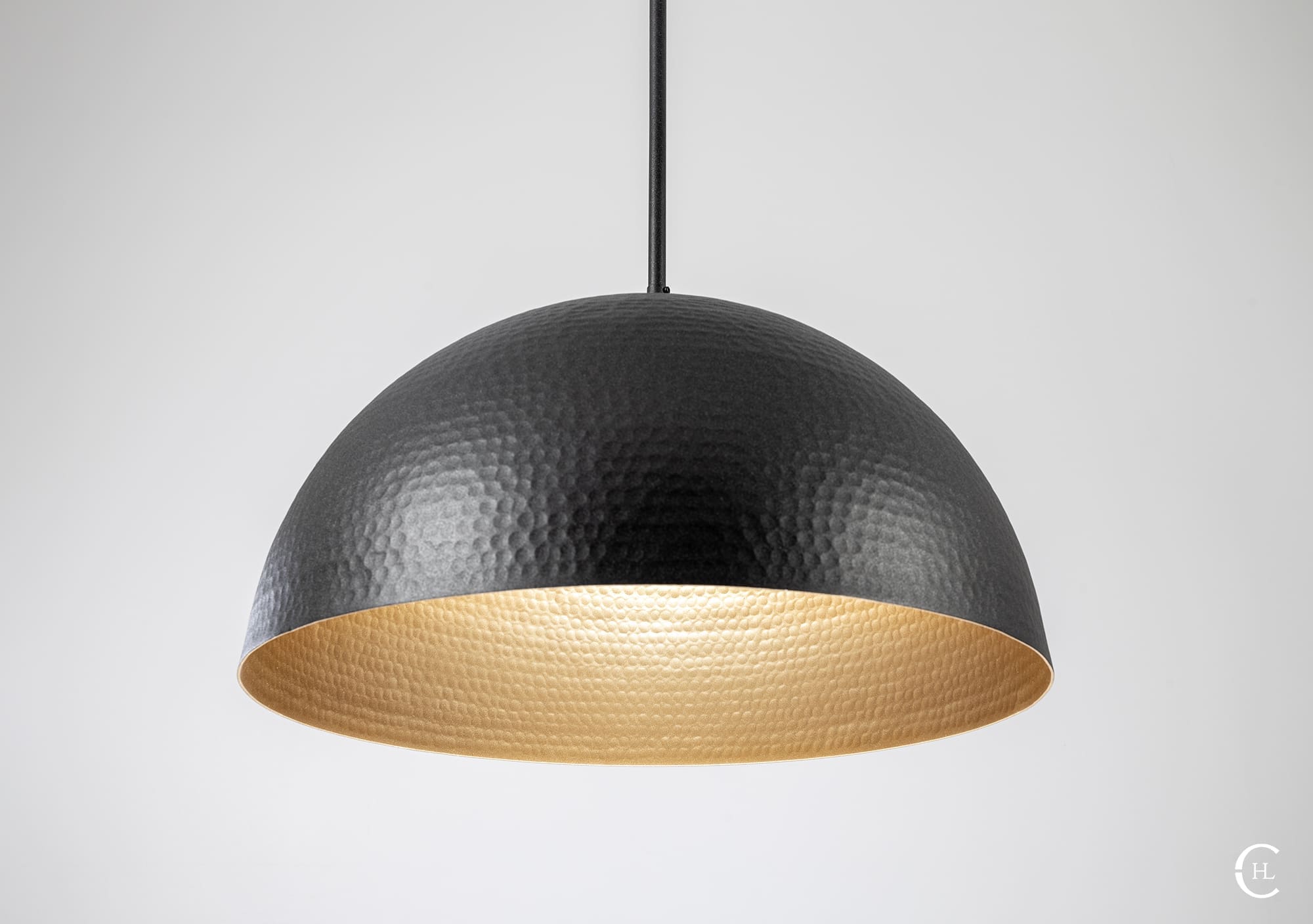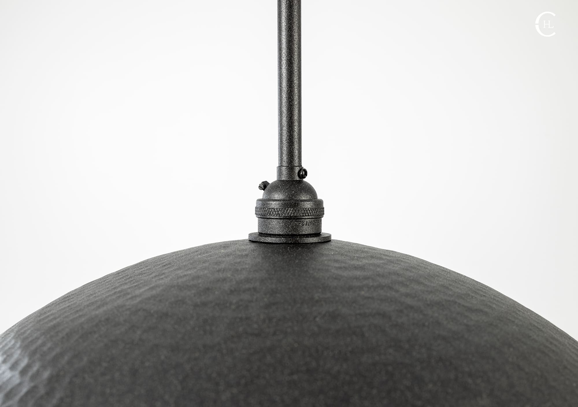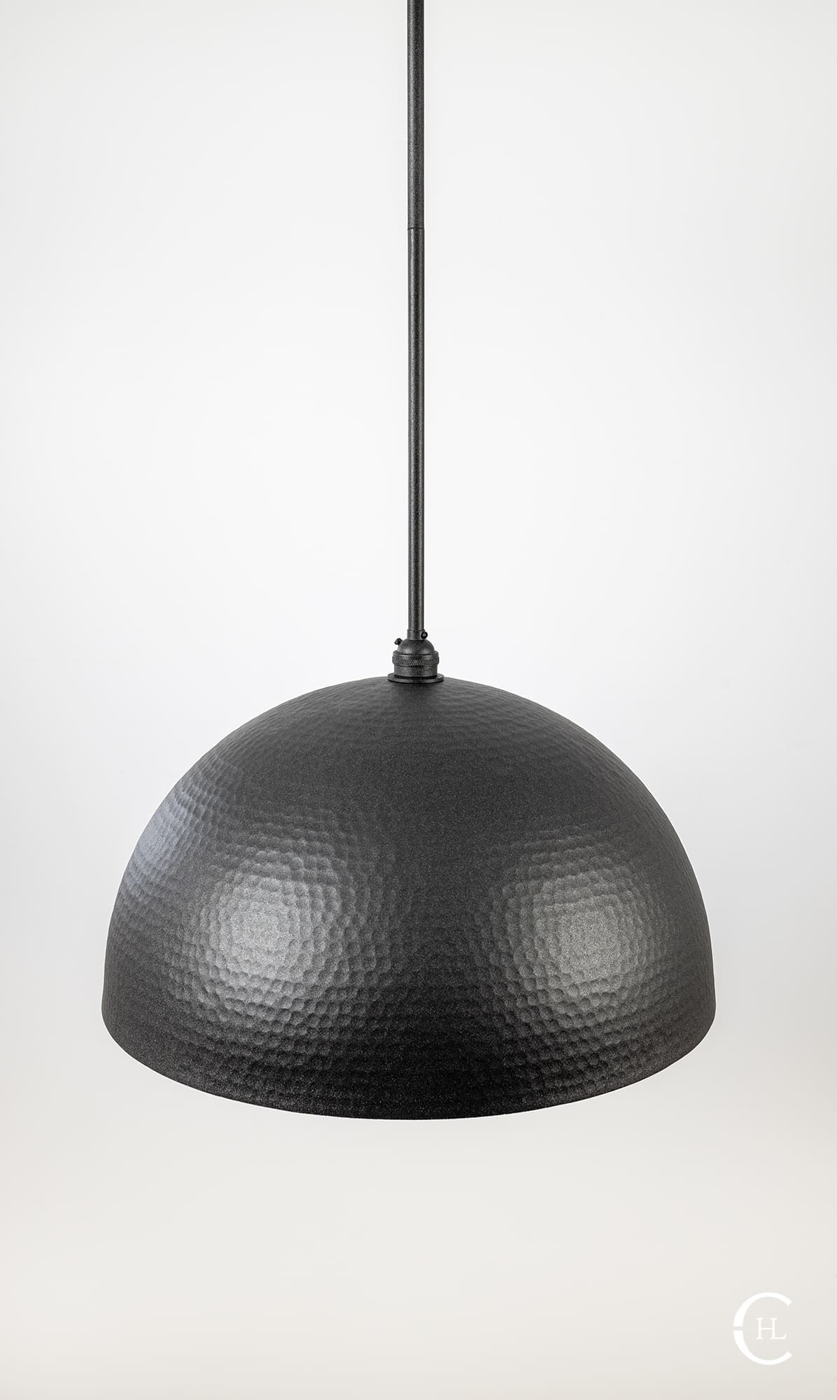 Our handcrafted Charcoal Hammered Dome Pendant Light Fixture features hundreds of small manually hammered dimples around an industrial sleek dome. If having one of the most textured lighting materials in our store wasn’t enough, our ten interior finishes give you multiple options to compliment the charcoal dome top. This is not a pendant light fixture to tuck away in a low traffic area of your home or business. Our Charcoal Hammered Dome Pendant Light Fixture is the quintessential industrial-elegant centerpiece.