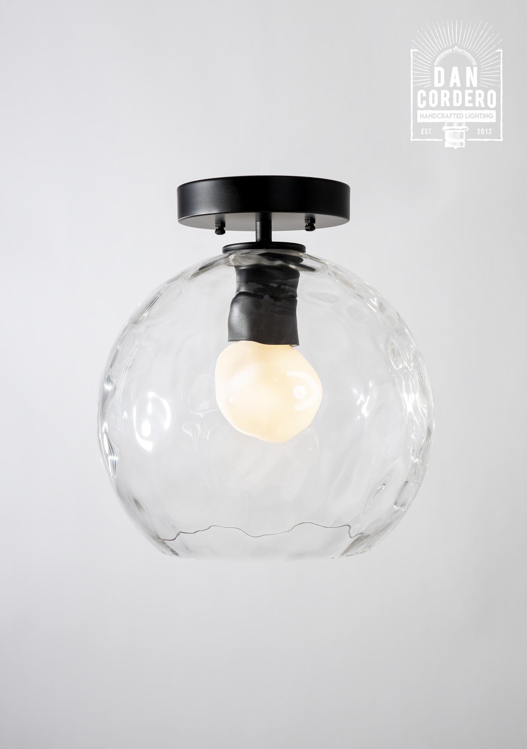 Bring artisan elegance to your space with our handcrafted Dimpled Glass Semi-Flush Mount Light — a stunning fusion of modern simplicity and timeless character. Each fixture features a beautifully hand-blown glass globe with organic dimples that gently refract light, adding texture and warmth to any room.