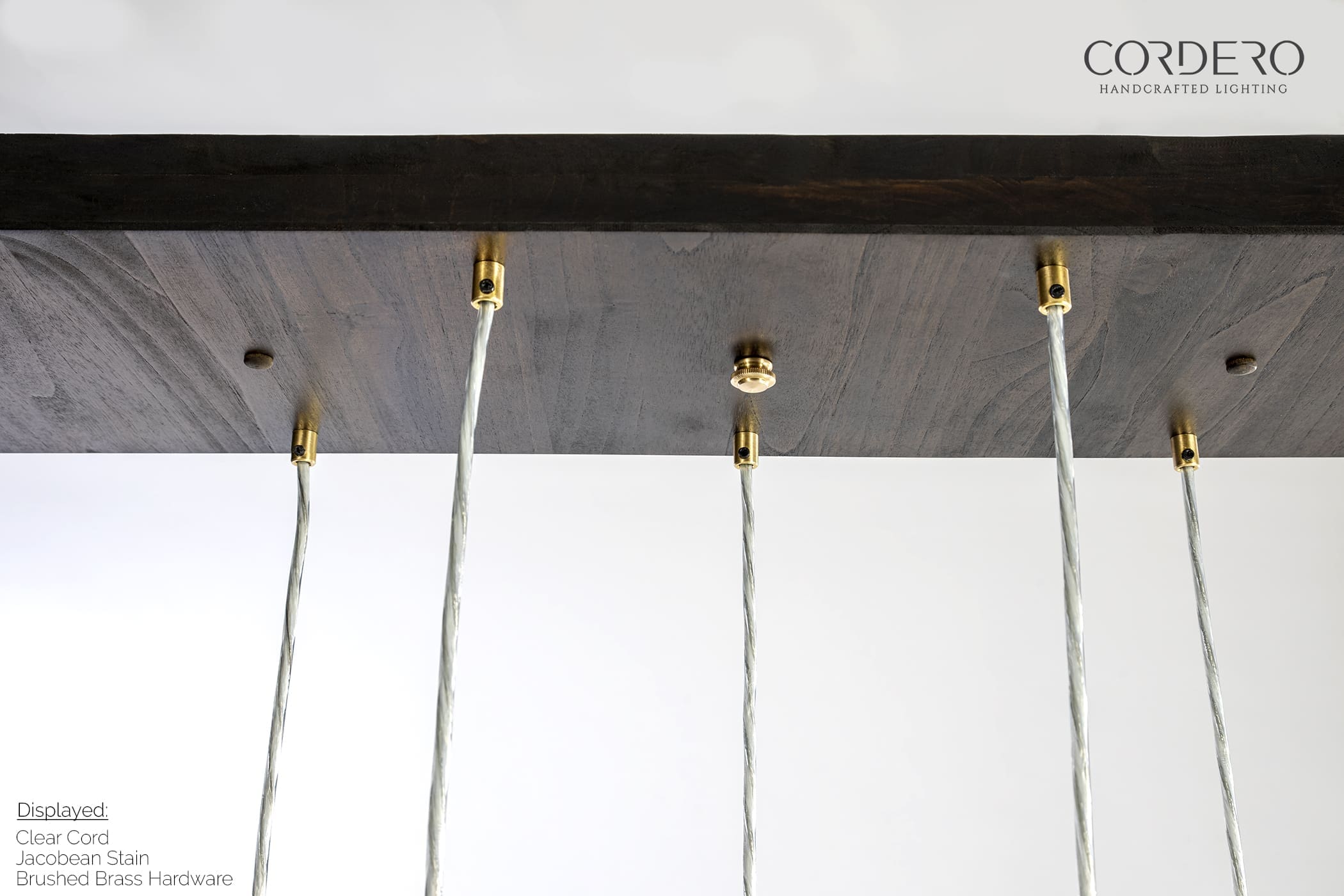 Designed on a 10″ x 36″ rectangular shape (displayed with 7 globes), our handcrafted solid Red Oak wood canopy allows each globe light fixture to be thoughtfully and securely suspended based on customized heights. Choose from the following additional features below.