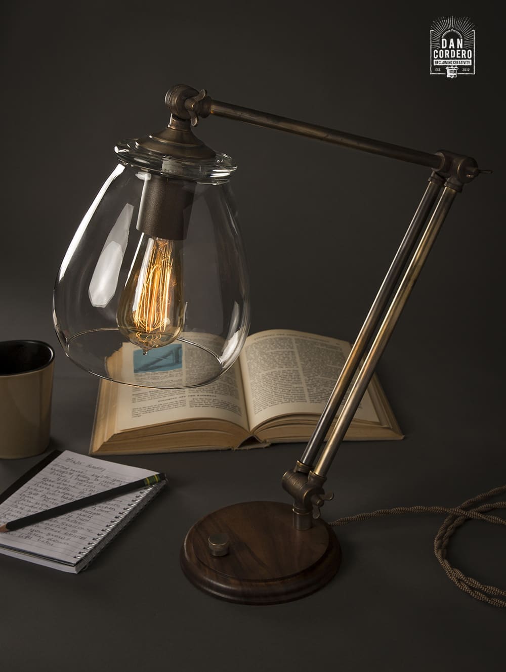 With an eclectic combination of aged brass, a rich solid walnut base and vintage braided cording, our hand-made table lamp from the Leora Collection delivers contemporary industrial charm while radiating a warm sophisticated glow to any space. Another unique feature of the Leora is a handcrafted aged brass rotary dimmer knob, which allows you to dial in to your desired mood throughout the day.