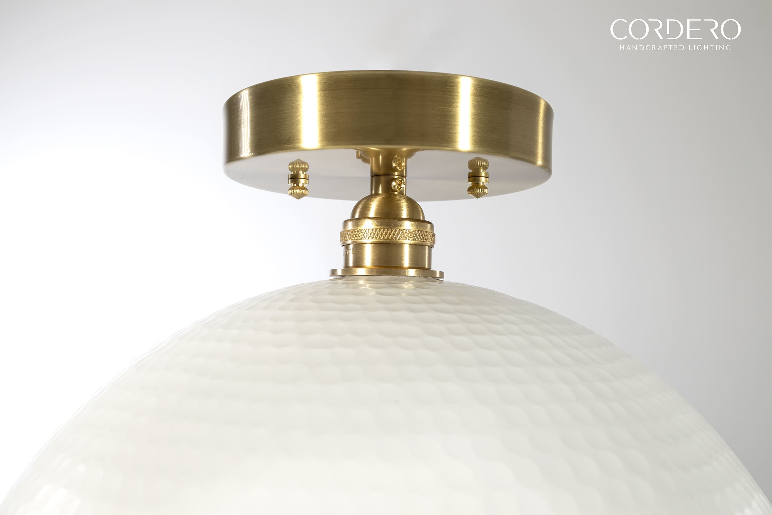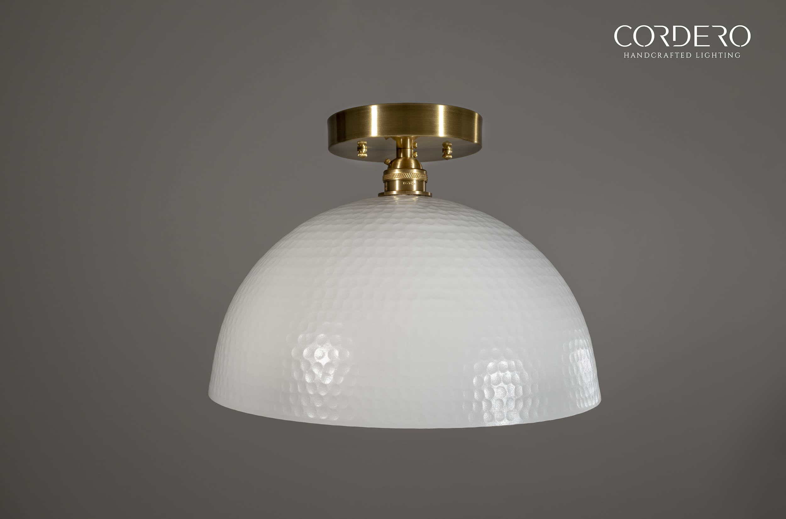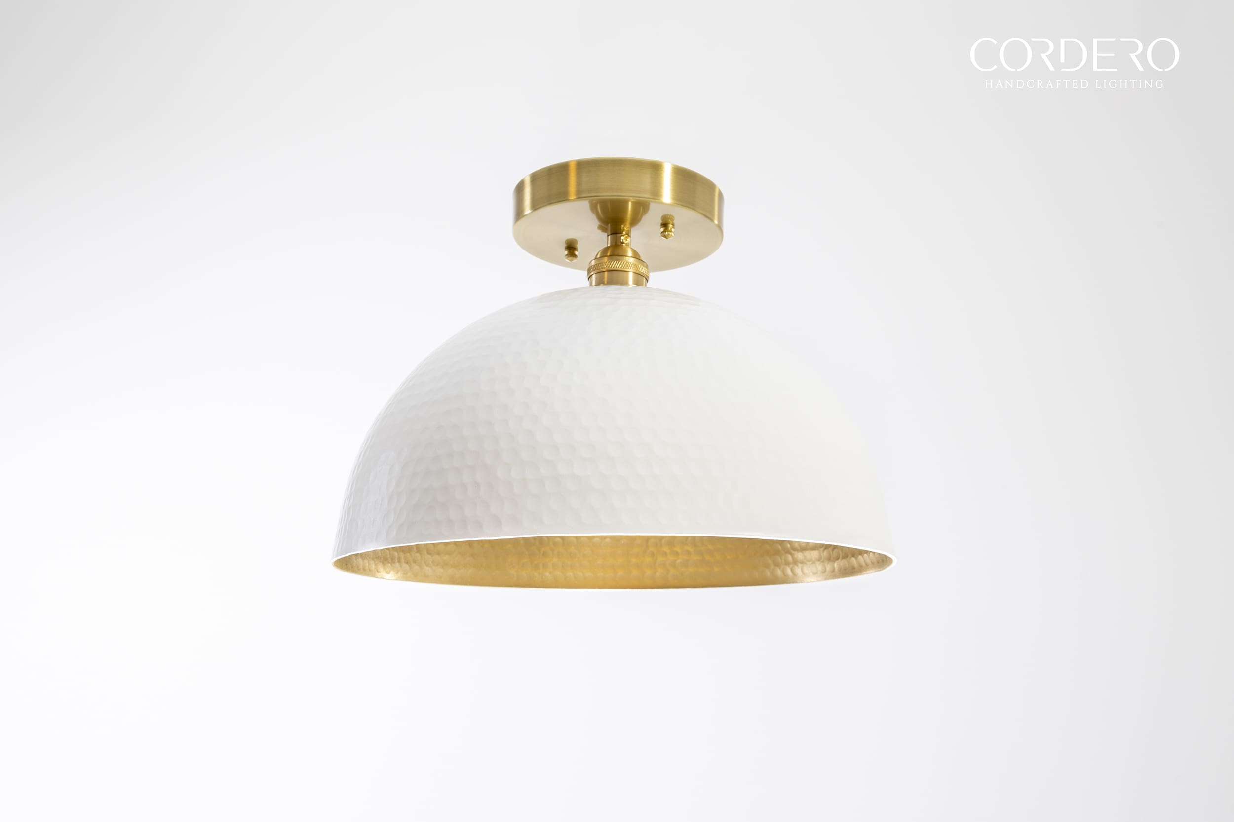 Our handcrafted Hammered White Flush Mount Light Fixture features hundreds of small manually hammered dimples around an industrial sleek dome. If having one of the most textured lighting materials in our store wasn’t enough, we offer 2 interior finishes along with 3 styles of light bulbs to customize this to your exact taste. This is not a light fixture to tuck away in a low traffic area of your home or business. Our Hammered White Flush Mount Light Fixture is the quintessential industrial-elegant centerpiece.