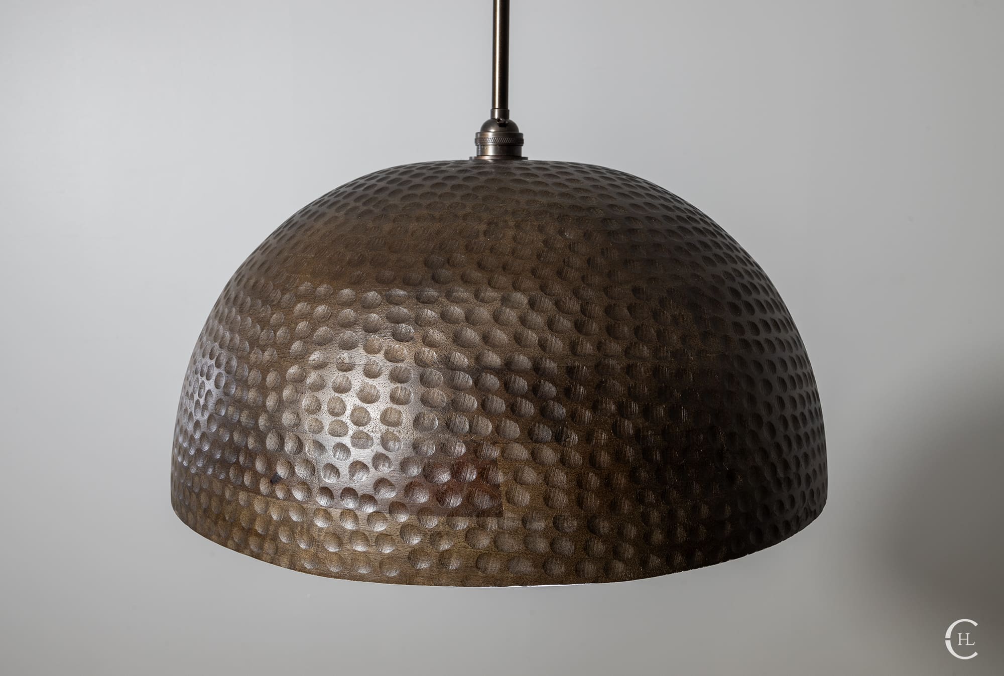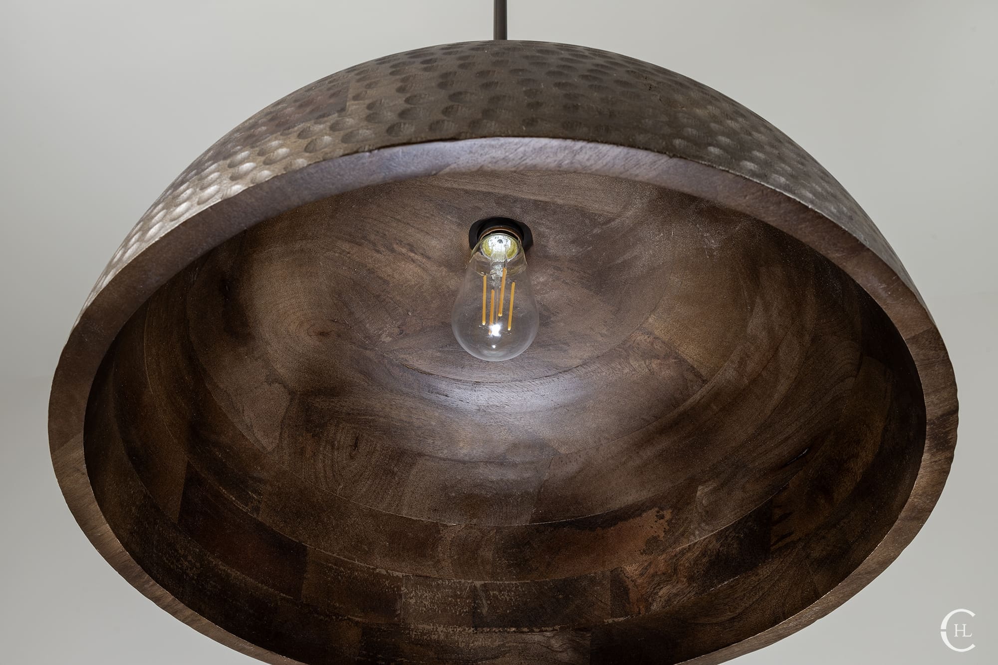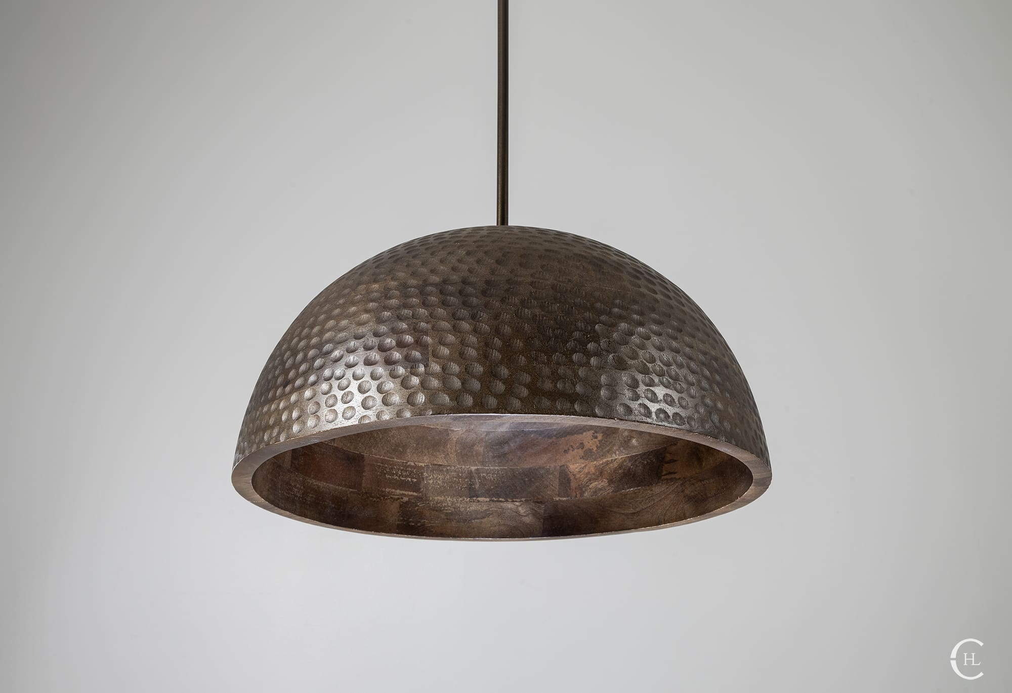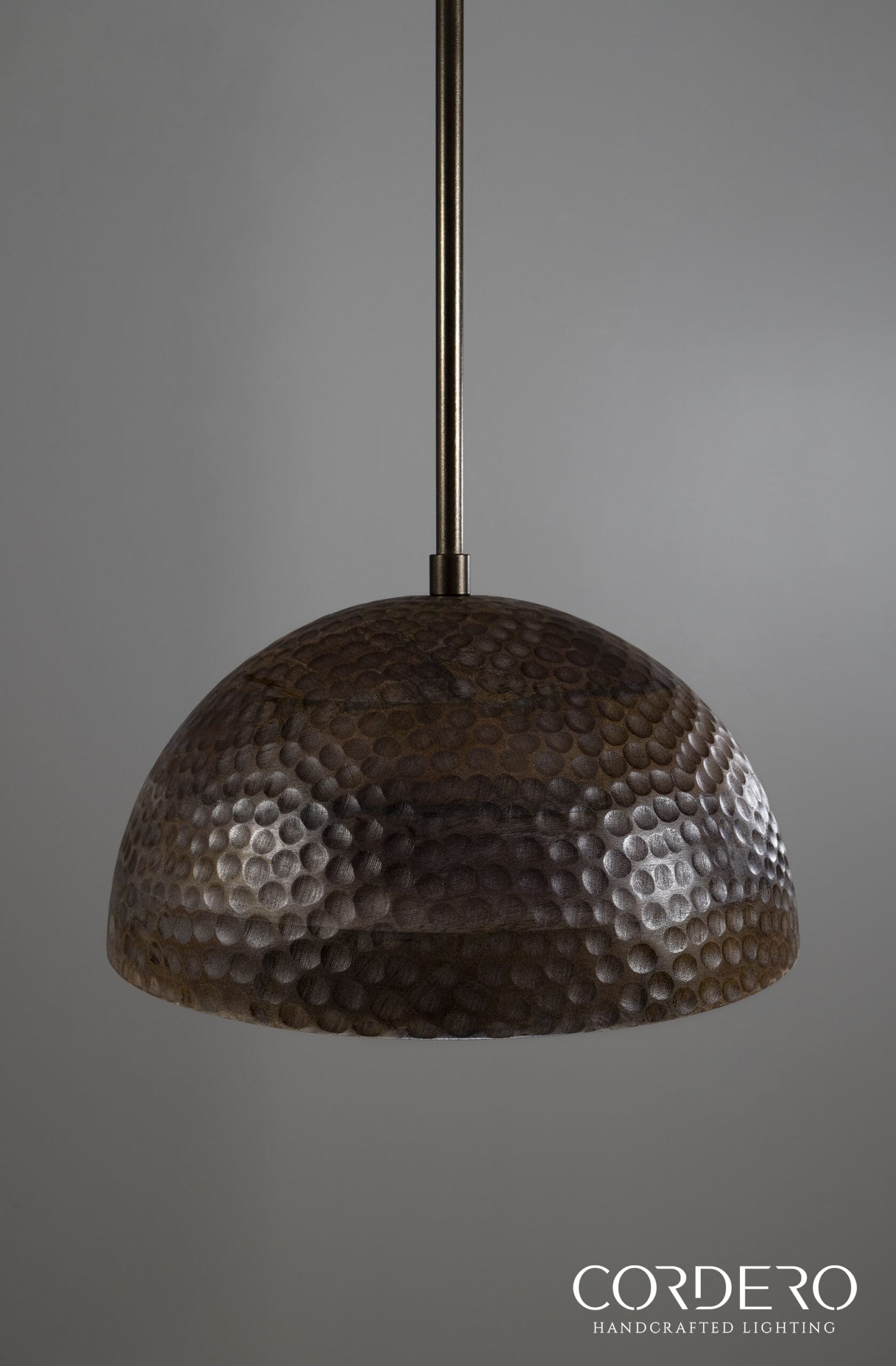Invite the radiance of the natural world into your next indoor space with our Jacobean Wood Hammered Dome Pendant Light. This all-natural Mango hardwood dome features unique variations in woodgrain patterns and hues. Our team of skilled artisans delicately shape the durable Mango wood and hand hammer the full exterior, revealing the ultimate craftsmanship of natural materials. The Jacobean Wood Hammered Dome Pendant Light features a sleek metal rod connecting the fixture’s warm silhouette with a complementary Jacobean-stained wooden canopy. Bring the outdoors as you illuminate your next space with the brilliance of nature.Â