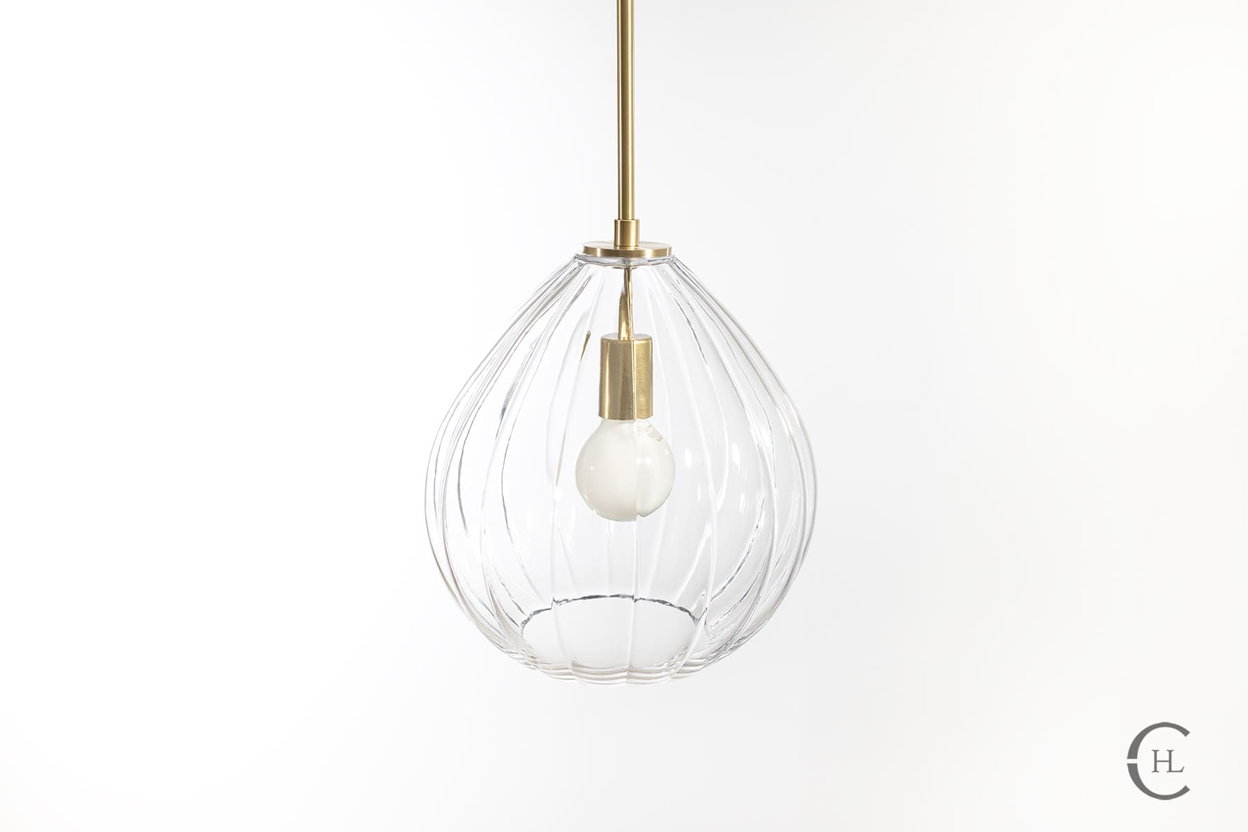 Like a delicate jewel, the Kalmia Pendant Light gracefully suspends and disperses light through its uniquely ribbed 12” inch glass body. The single drop interior rod and interior brass hardware complete the look with modern, clean lines. The Kalmia Pendant Light comes in a variety of hardware finishes as well as LED Edison or globe bulb option to perfectly complement your next home or office space. Suspend as a single pendant for a bold statement or hang in a series for the ultimate bejeweled kitchen island or dining room set.