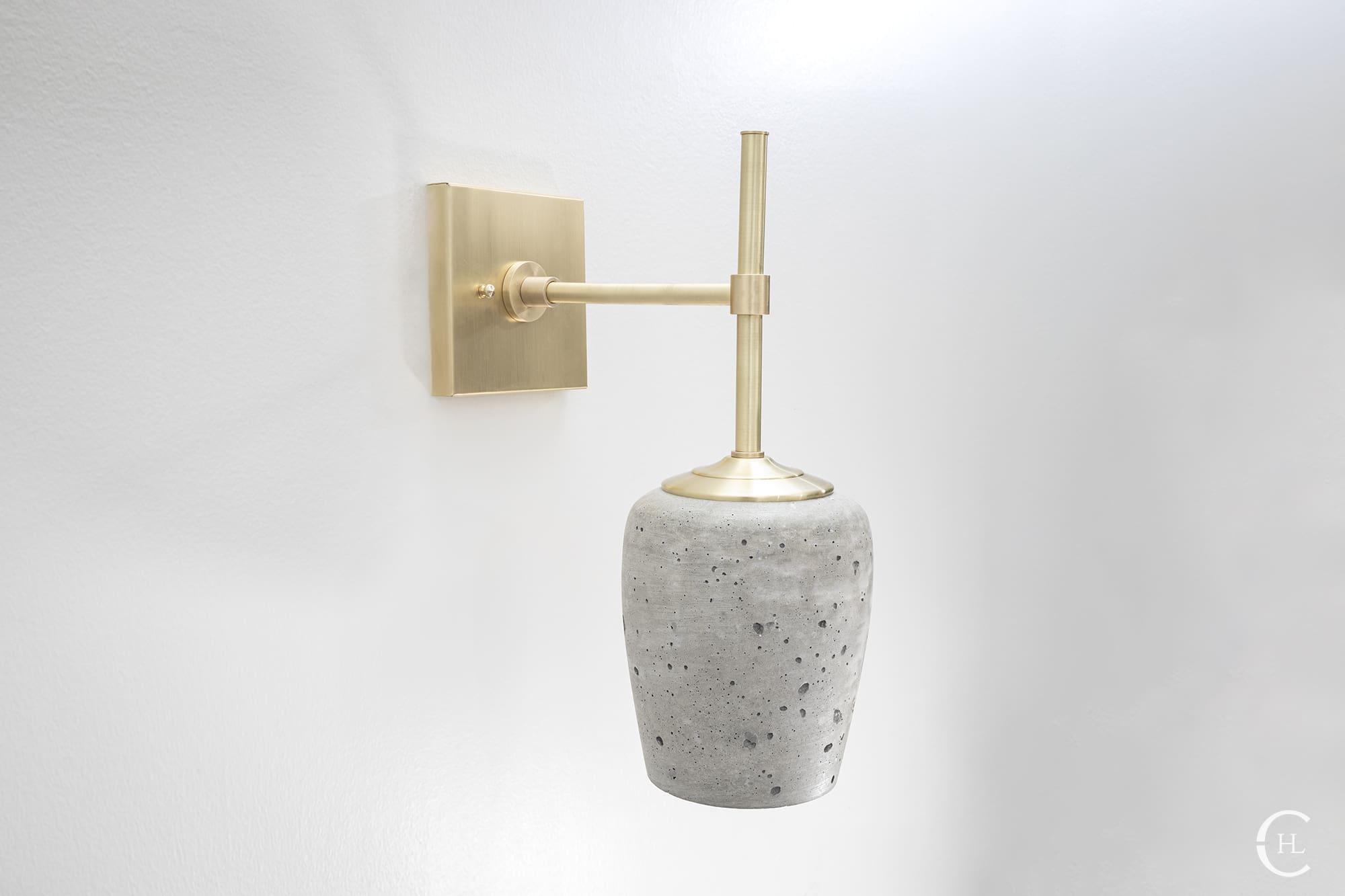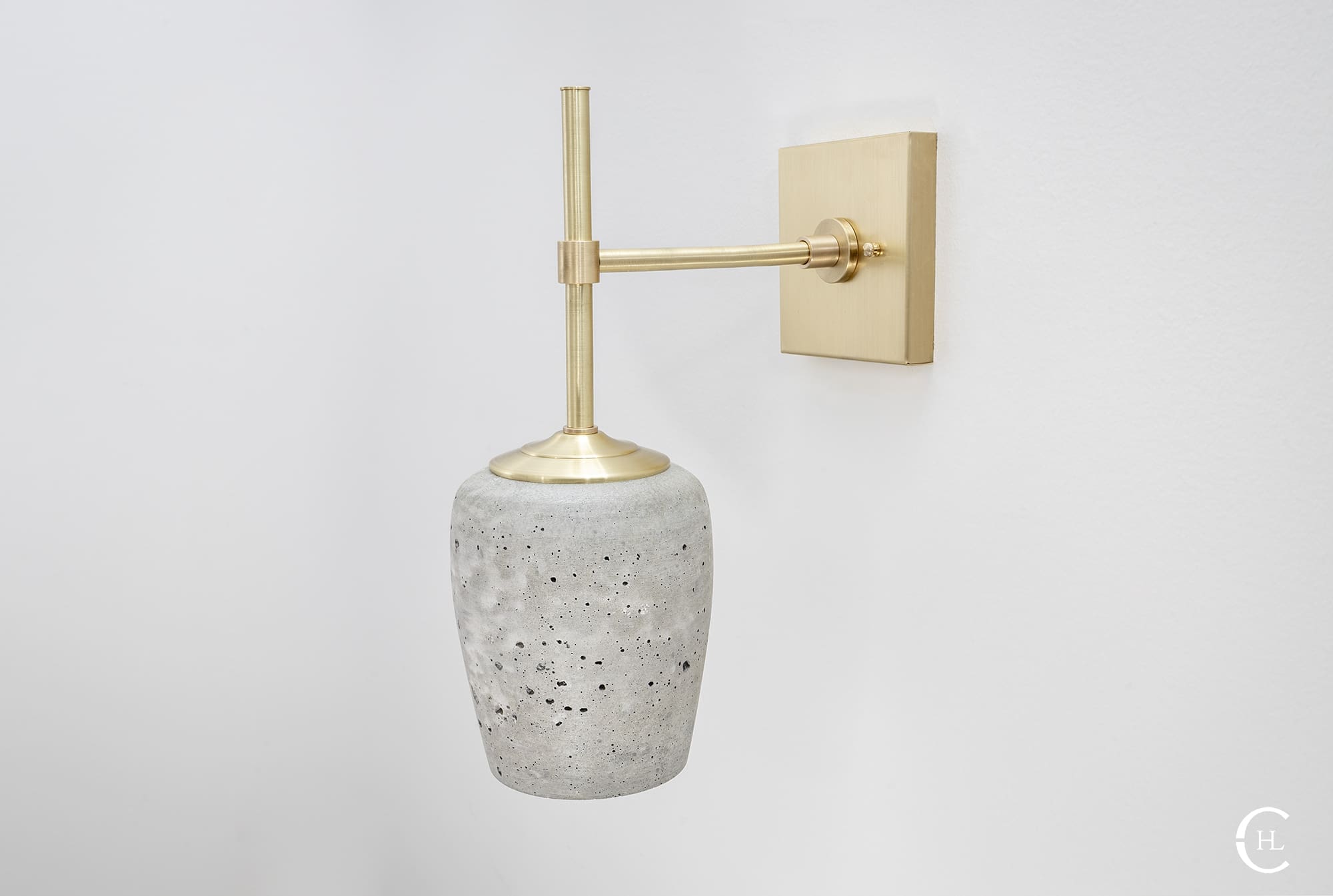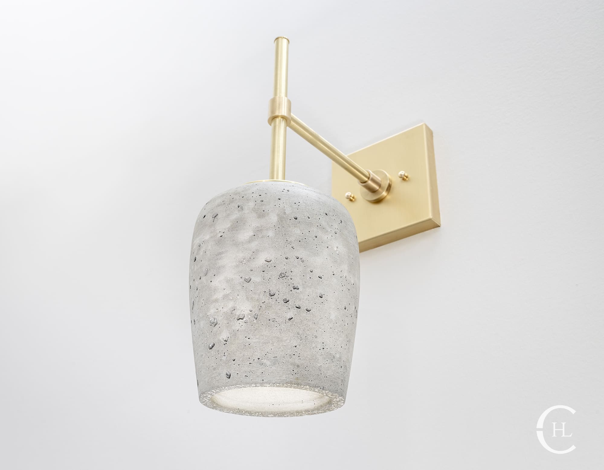 The Kapona Concrete Wall Sconce redefines the aesthetic balance between delicacy and strength. Hand poured in-house, the Kapona Concrete Wall Sconce boasts naturally occurring striations and subtleties found in its Portland Grey, exceptionally strong concrete shade. The solid brass sconce hardware comes in a variety of finishes which adds sleek brilliant contrast to the more natural, organic shade element. The Kapona Concrete Wall Sconce can be mounted up or down for a wider variety of mood lighting and design styles. Display the Kapona as a single light source or use in pairs to line interior entryways, mirrors, furniture and more.