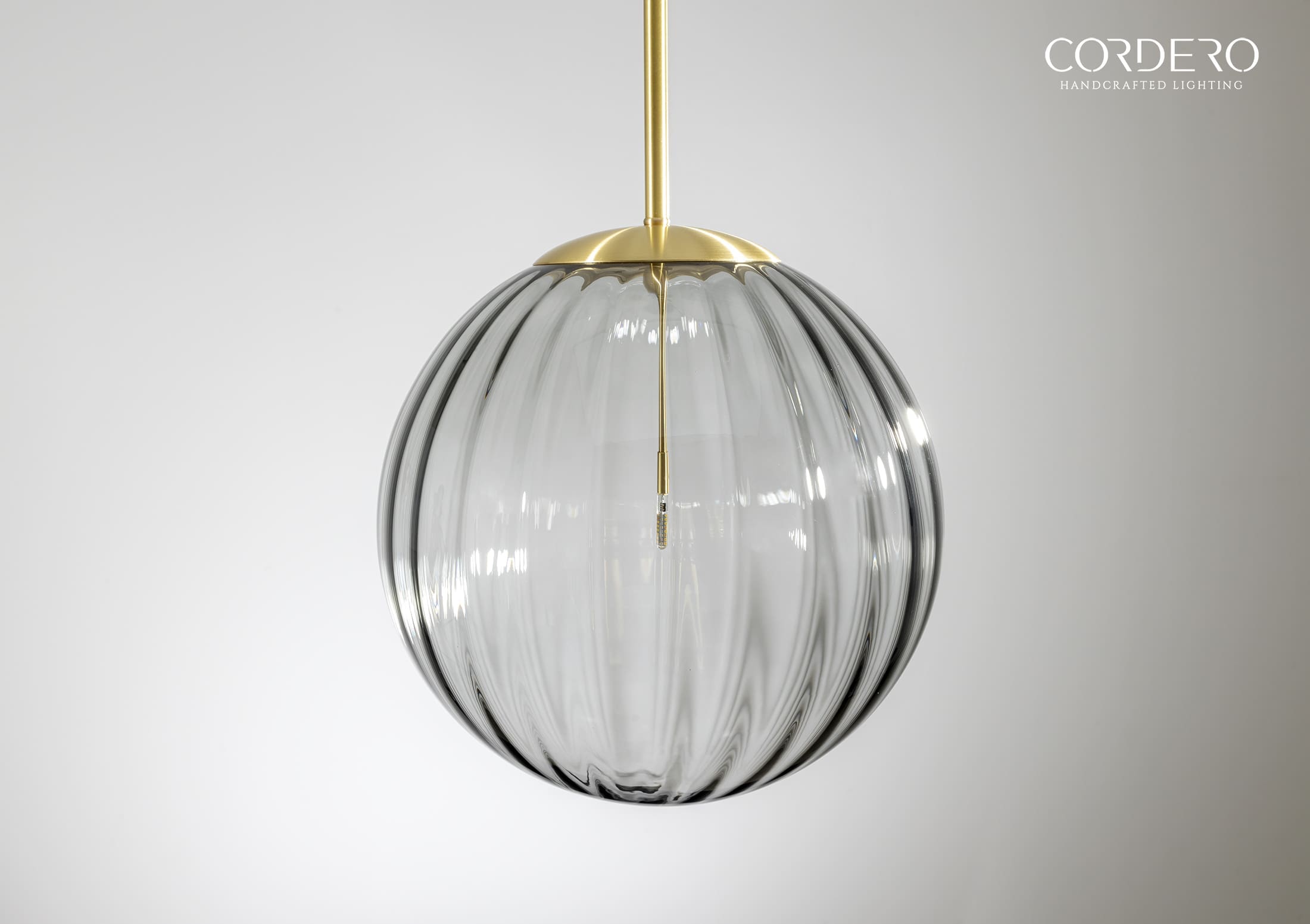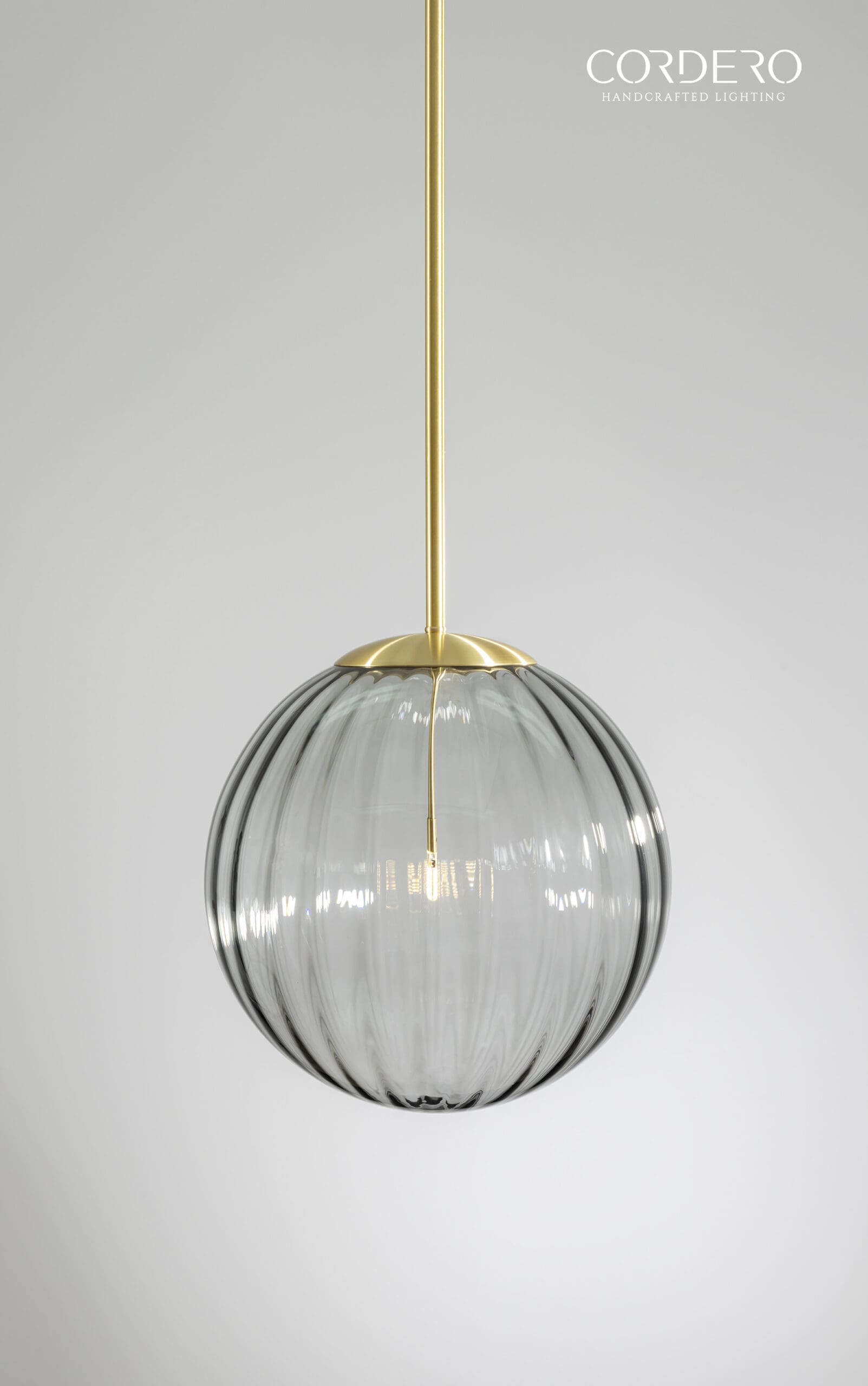 Like a delicate drop of ocean mist, the Lasina Pendant Light gracefully suspends and disperses light through its uniquely contoured smoked glass body. The ribbed glass creates dimension allowing the smoked tint to accentuate a stylish “cool-coastal meets vintage” vibe. The single drop interior rod and LED light finish up the look with modern, clean lines. The Lasina Pendant Light comes in a variety of hardware options to perfectly complement your next home or office space.
