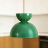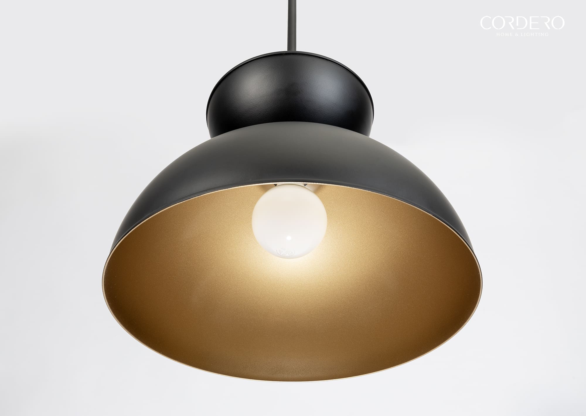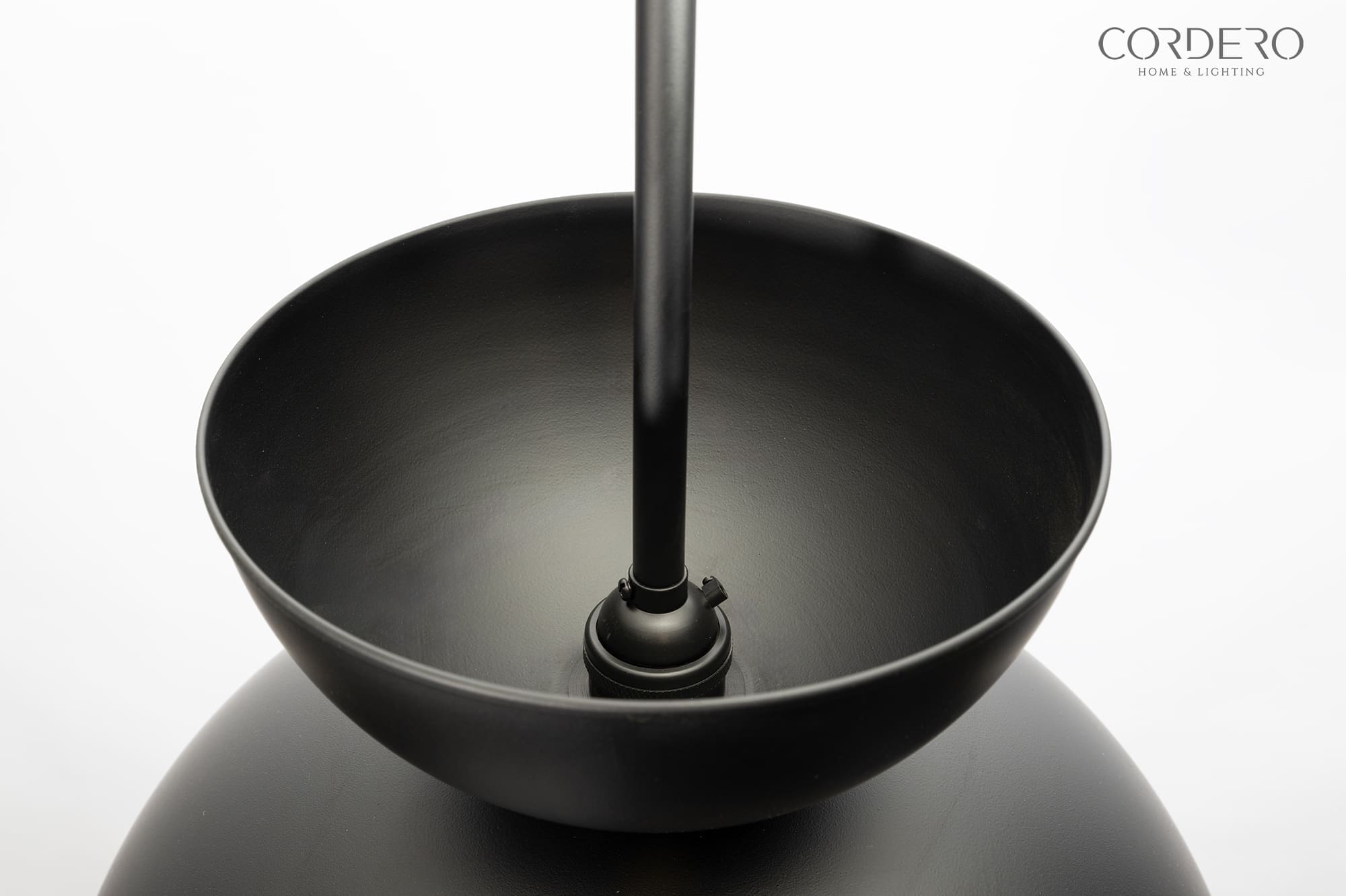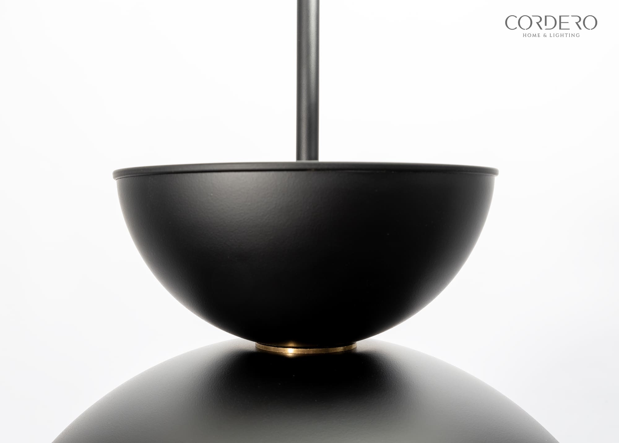 Bring bold, sculptural style into your space with the Nuvira Dome Pendant Light – Customizable. Inspired by the iconic silhouettes of the 1960s, this piece features a smooth 14″ half-sphere metal dome, paired with an inverted 8″ dome on top. An antique brass ring seamlessly unites the two forms, creating an elegant hourglass profile that feels both nostalgic and fresh.