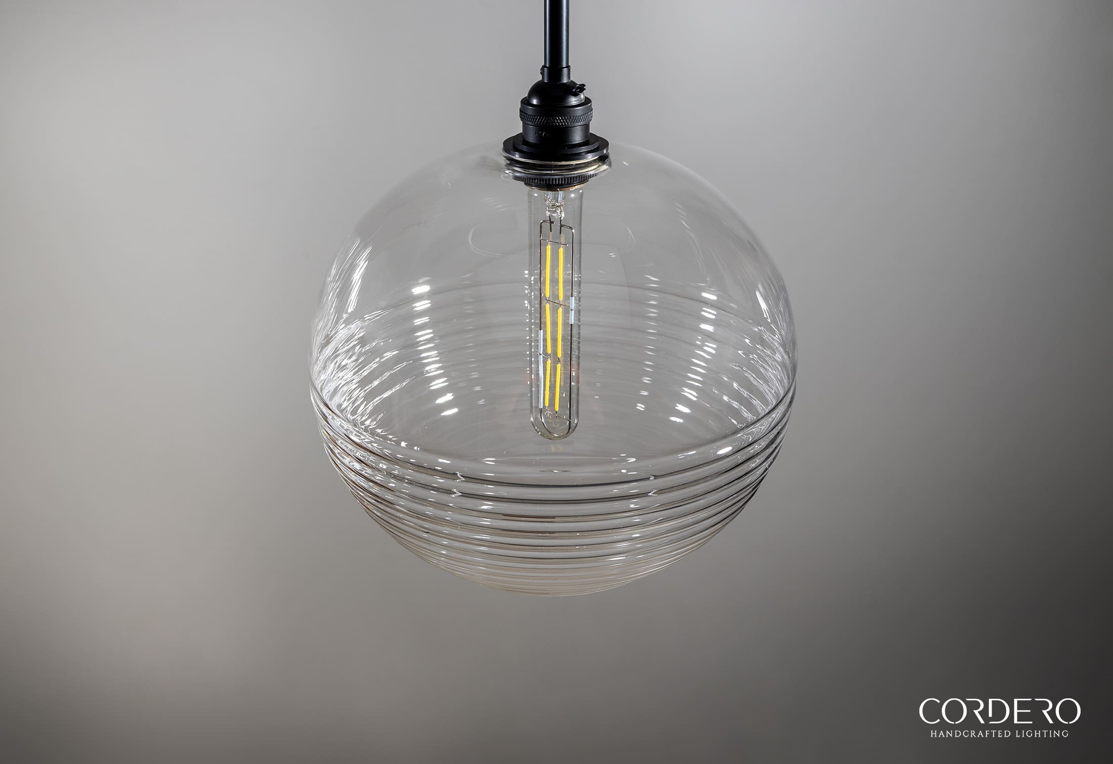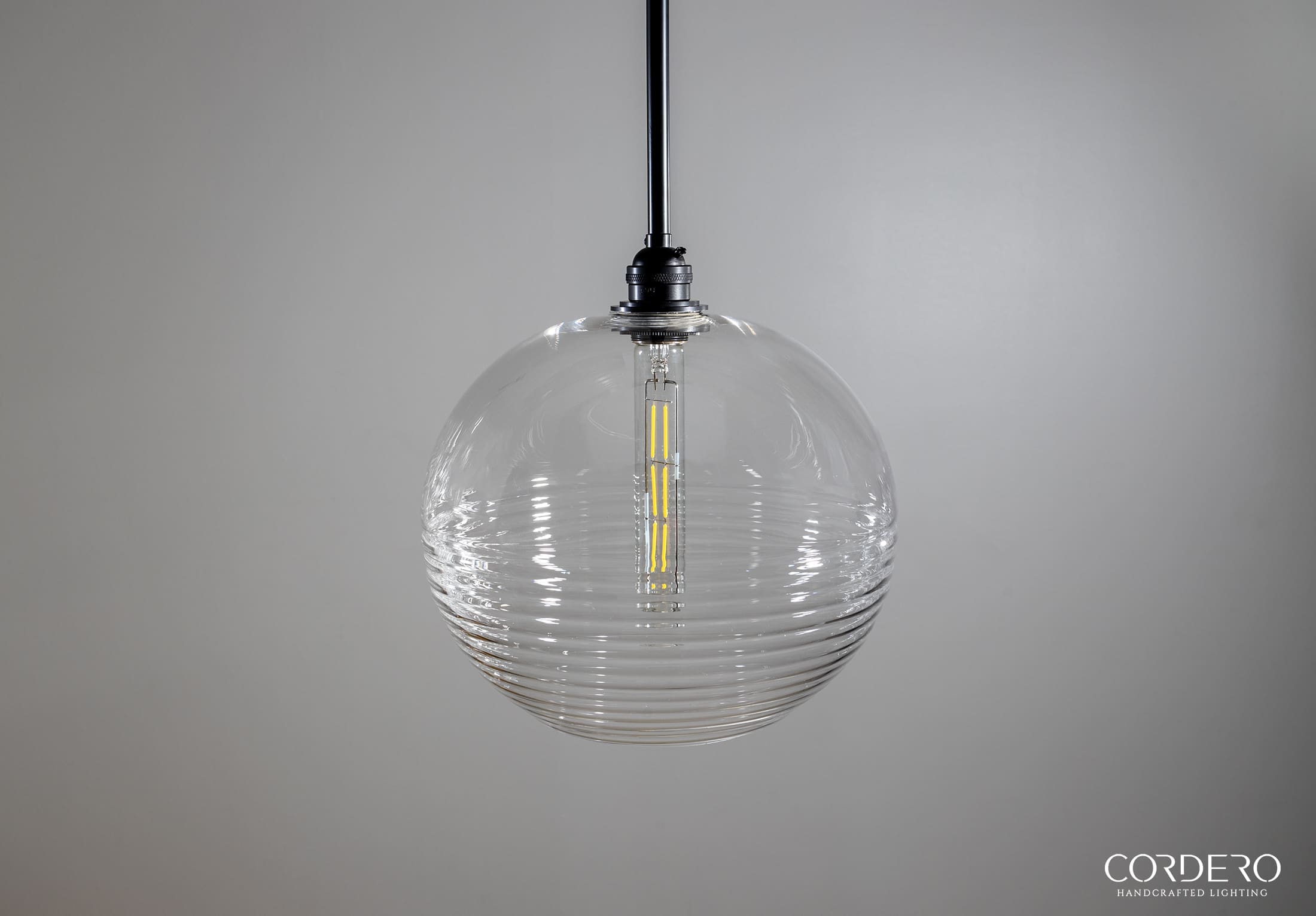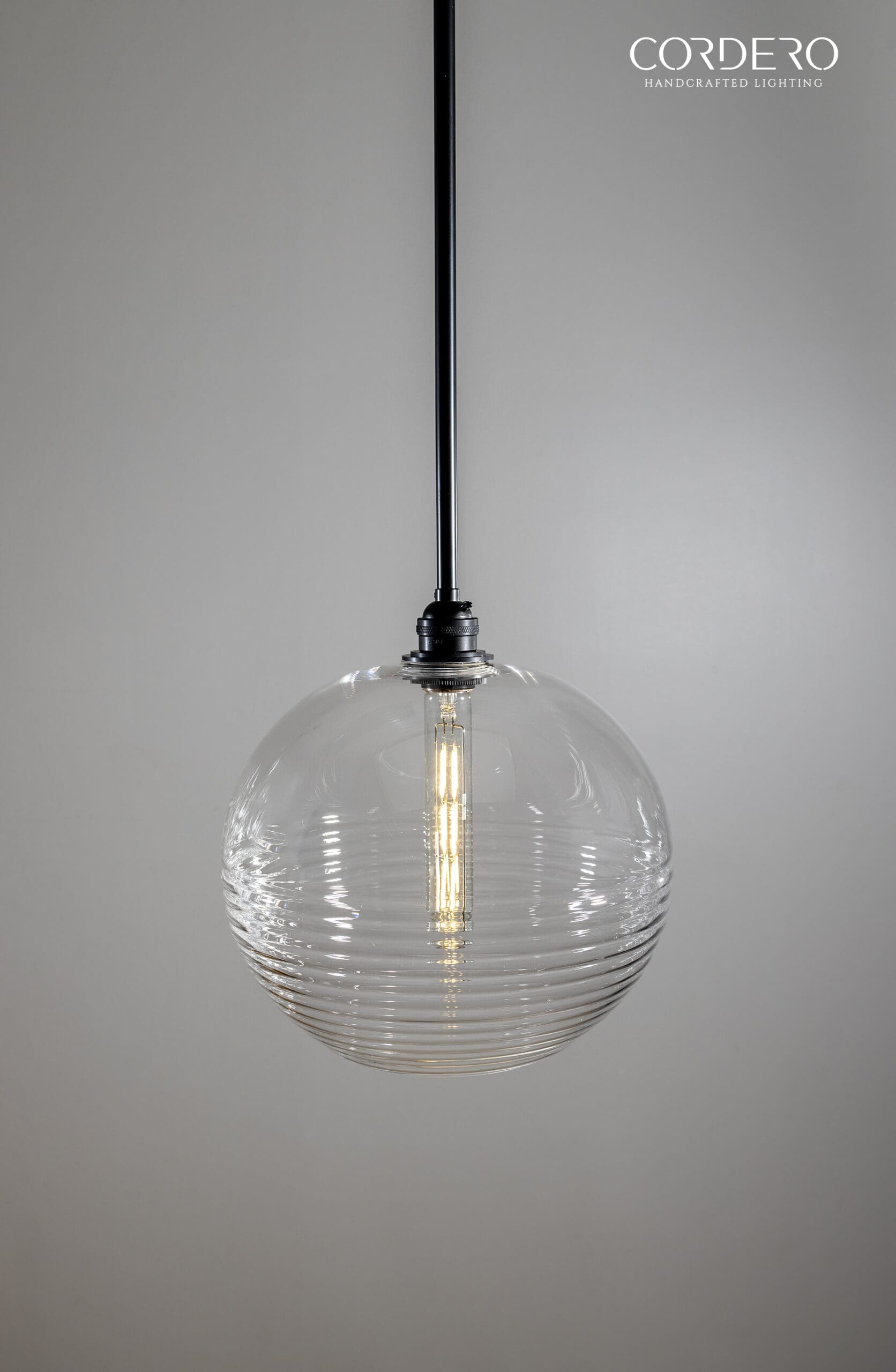 Our handcrafted Ribbed Globe Pendant Light Fixture will make a statement in any home or business with its captivating and alluring handblown corrugated glass which is available three globe size options and five finishes. Through this unique ribbed glass shade we illuminate your space by offering various bulb options in both incandescent and LED to suite your needs. With an array of metal finishes to choose from, our Ribbed Globe Pendant Light Fixture is the quintessential industrial-elegant centerpiece to any space.