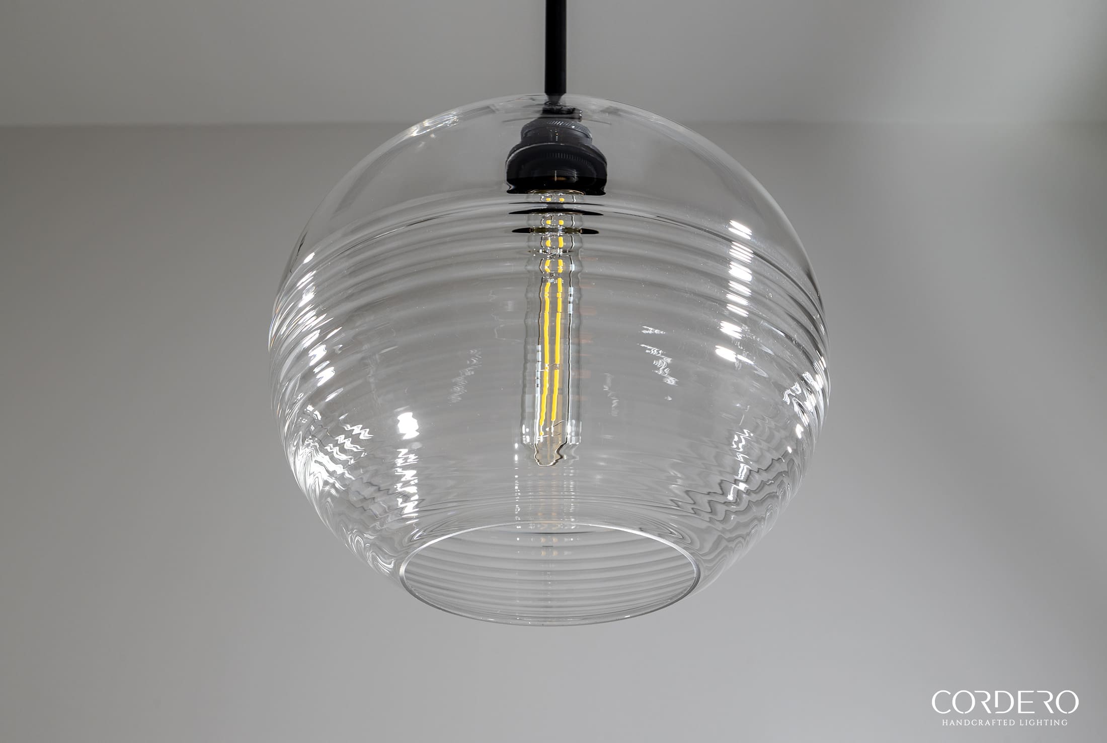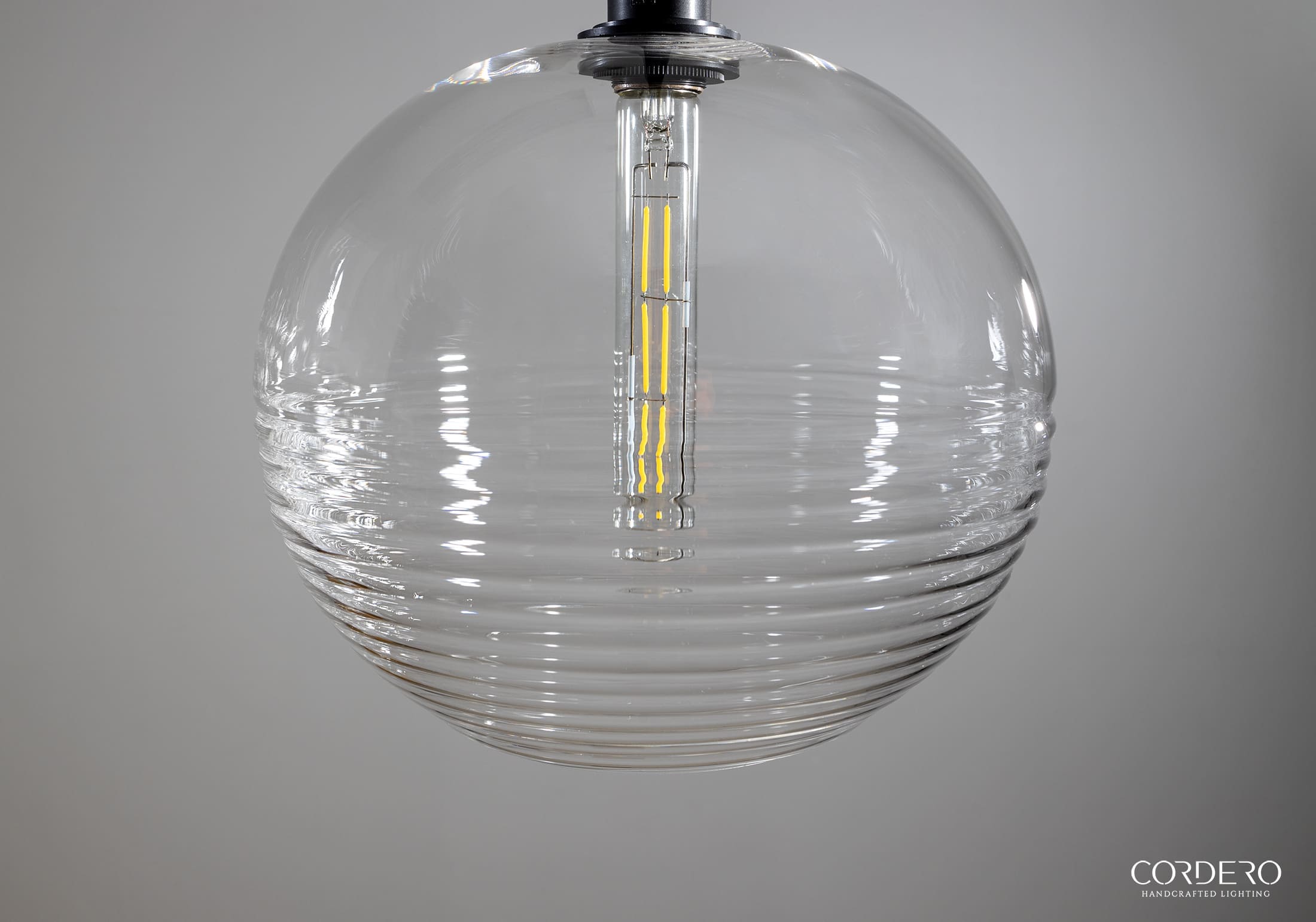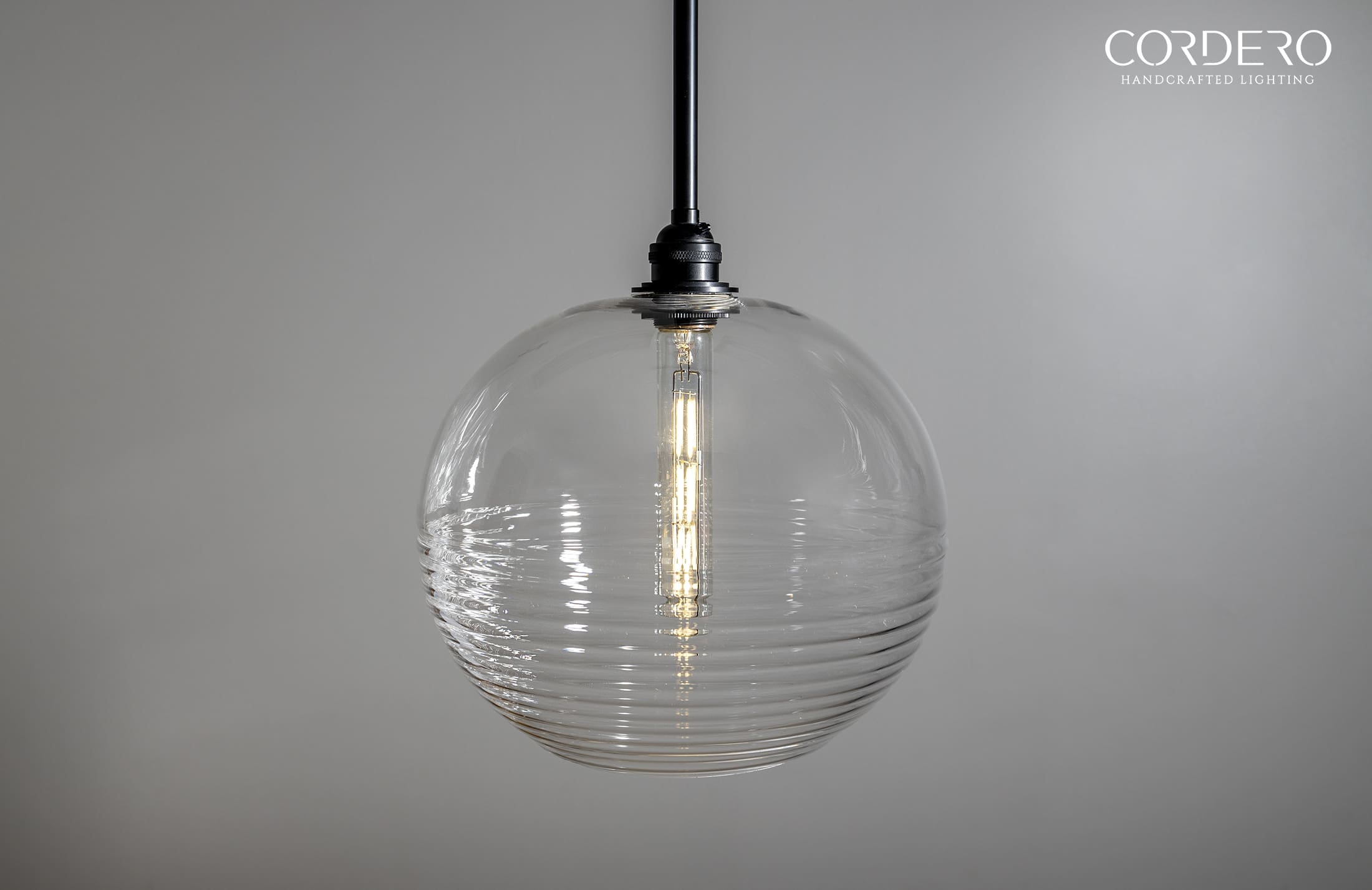 Our handcrafted Ribbed Globe Pendant Light Fixture will make a statement in any home or business with its captivating and alluring handblown corrugated glass which is available three globe size options and five finishes. Through this unique ribbed glass shade we illuminate your space by offering various bulb options in both incandescent and LED to suite your needs. With an array of metal finishes to choose from, our Ribbed Globe Pendant Light Fixture is the quintessential industrial-elegant centerpiece to any space.