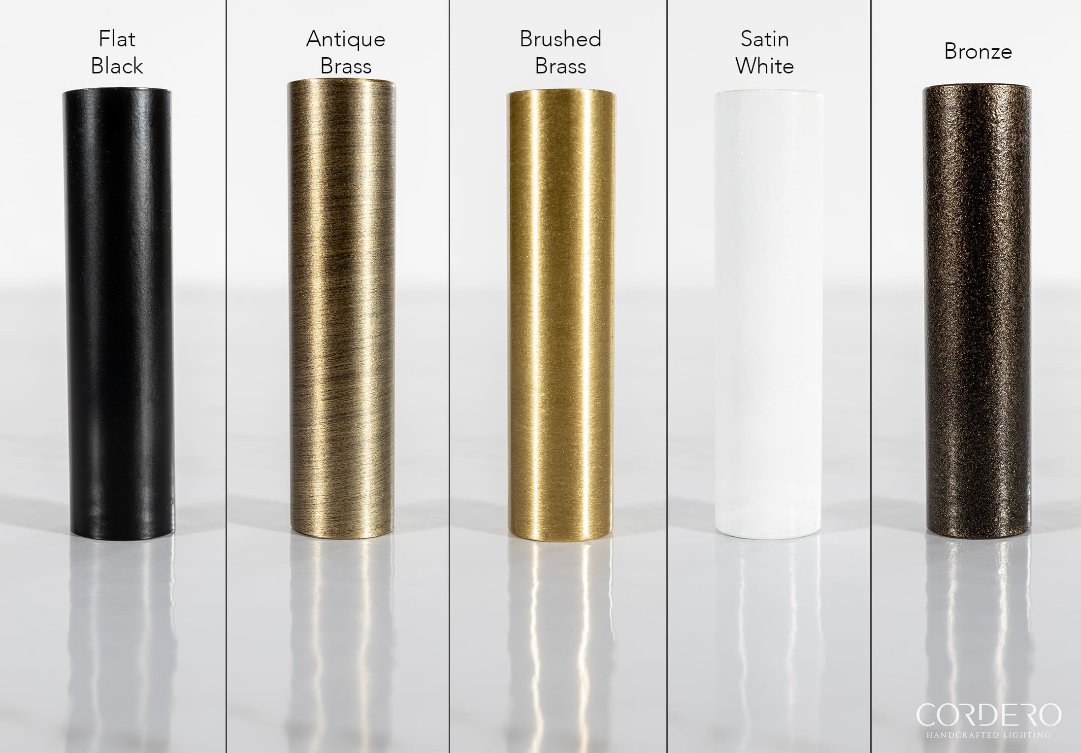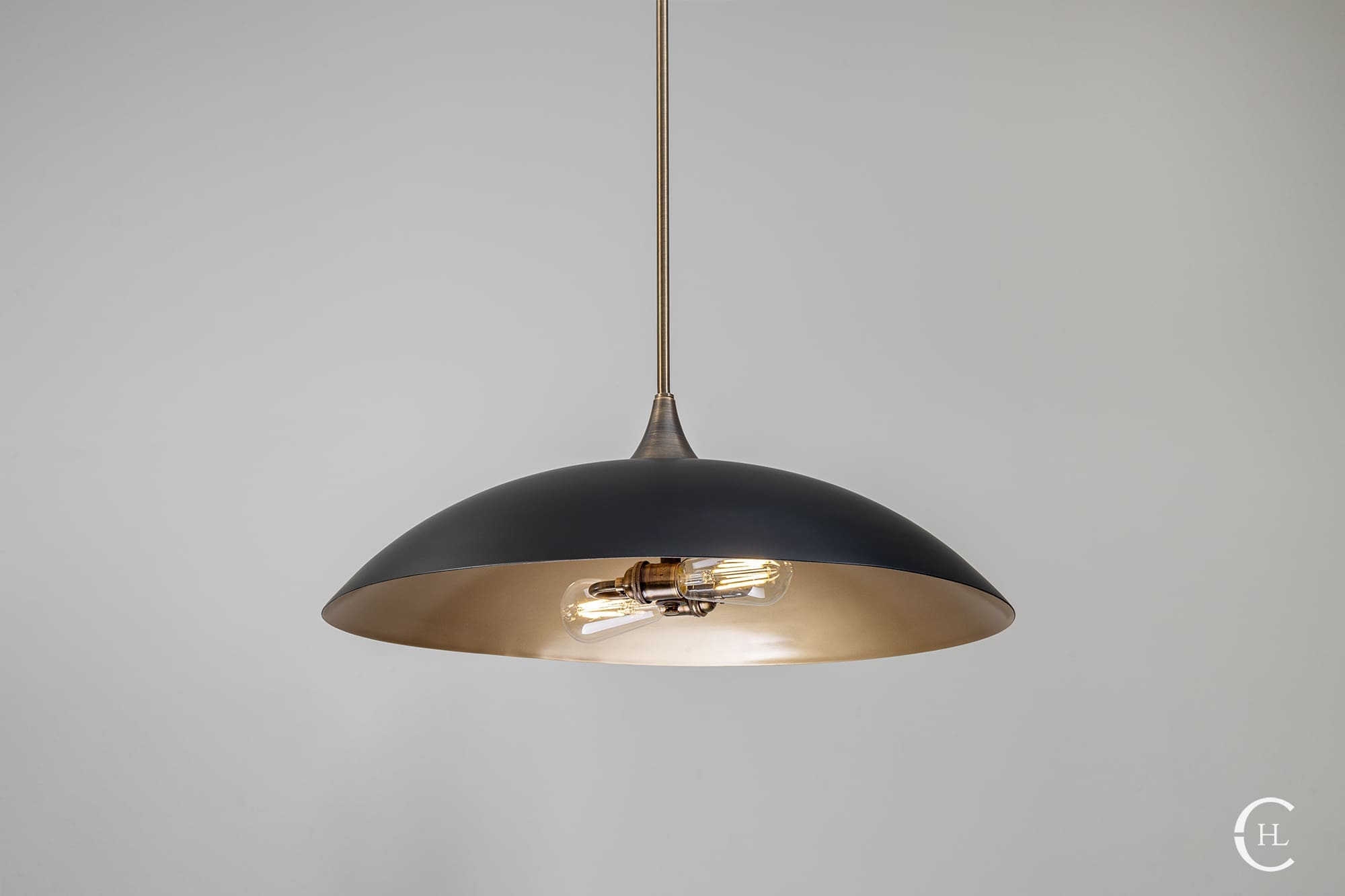 With sleek contours and an immaculate exterior flat black dome finish, The Rynn Dual Socket Dome Pendant Light embodies a new era of modern design. In contrast to its clean minimalist exterior, the Rynn’s interior lighting hardware offers a pop of intricacy. The interior’s uniquely curved dual socket LED bulb hardware allows light to beautifully broadcast under the custom-finished dome interior as well as onto kitchen, dining or entryway surfaces. The Rynn Dual Socket Dome Pendant Light spares no design detail while maintaining the highest quality standards including its custom-finished solid brass suspension rod and conical dome cap. Choose from two dome sizes, multiple hardware and dome interior finishes as well as LED bulb style for the ultimate personalized modern dome pendant. Â