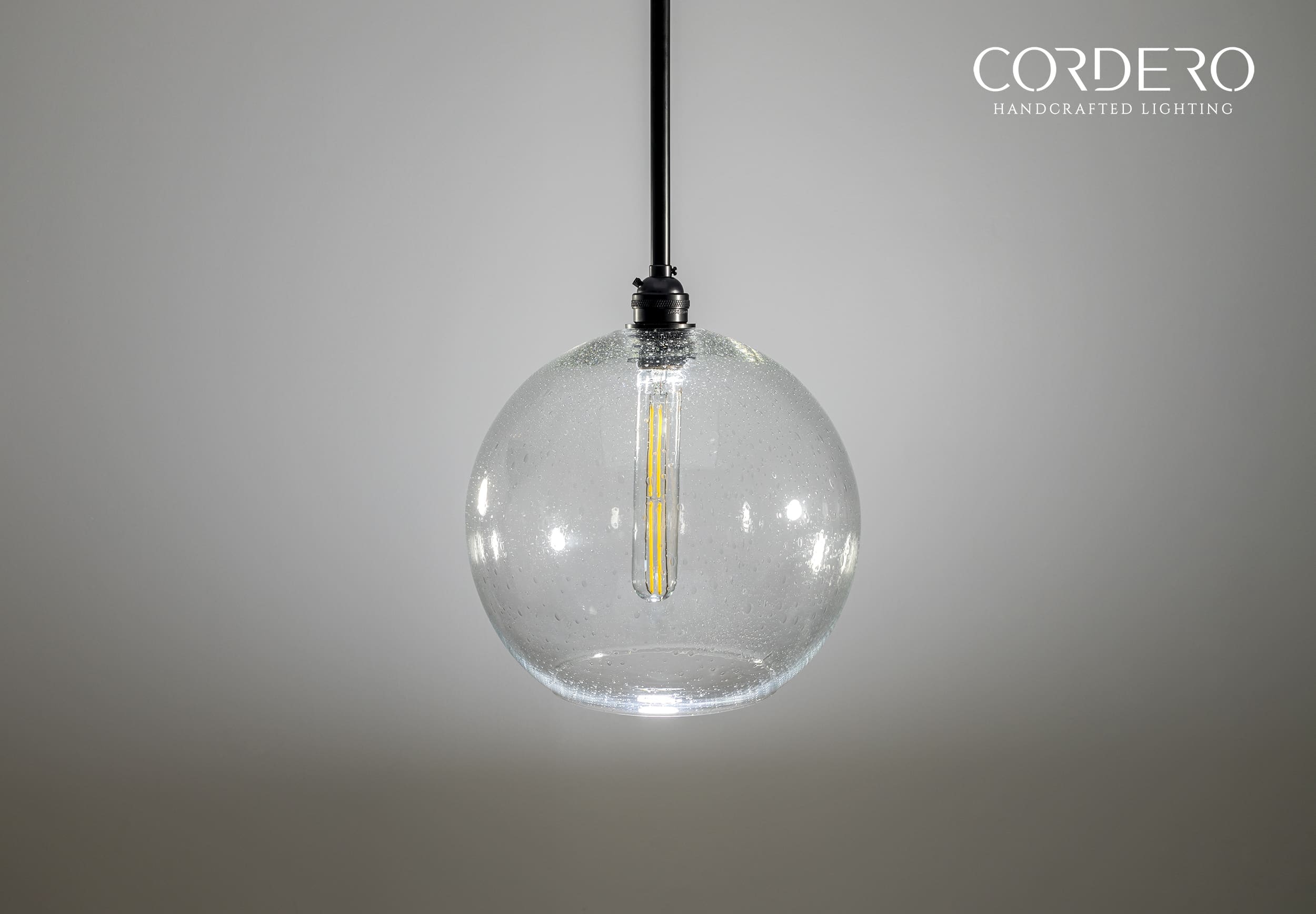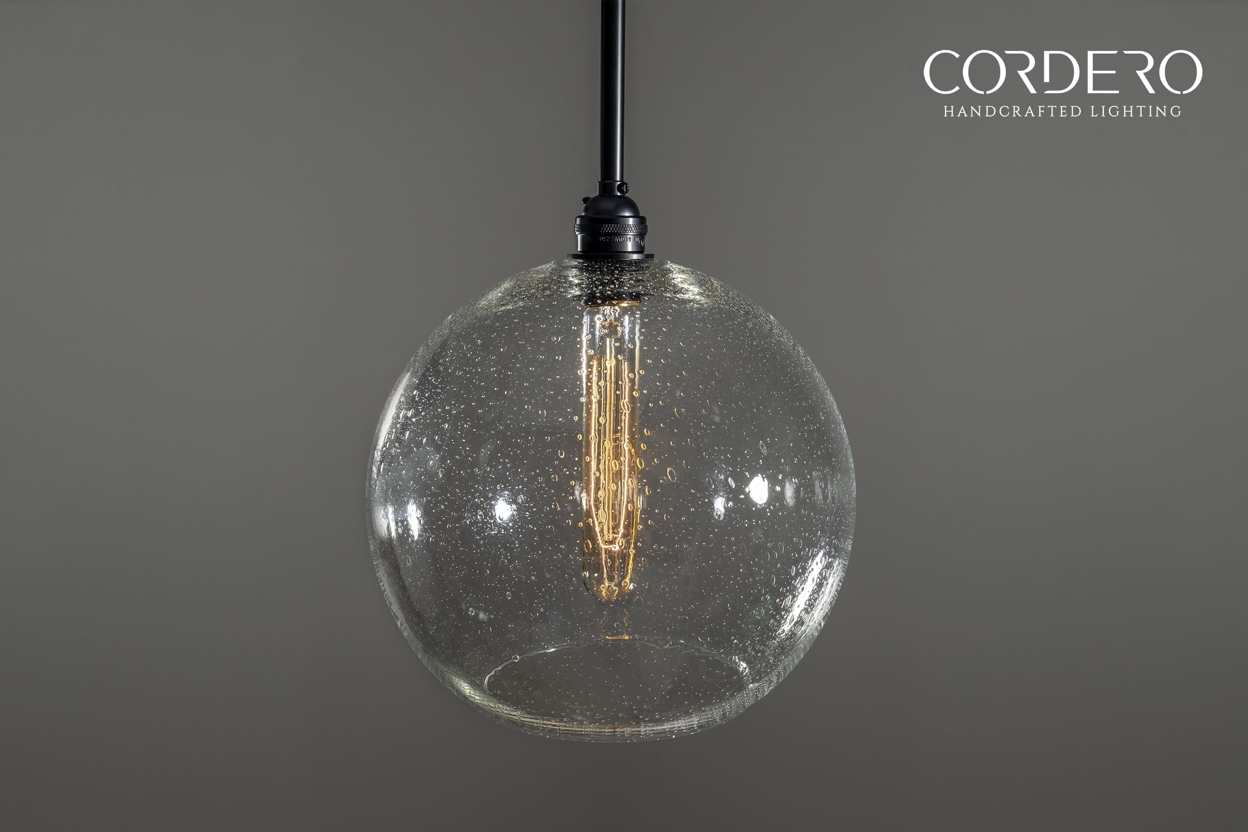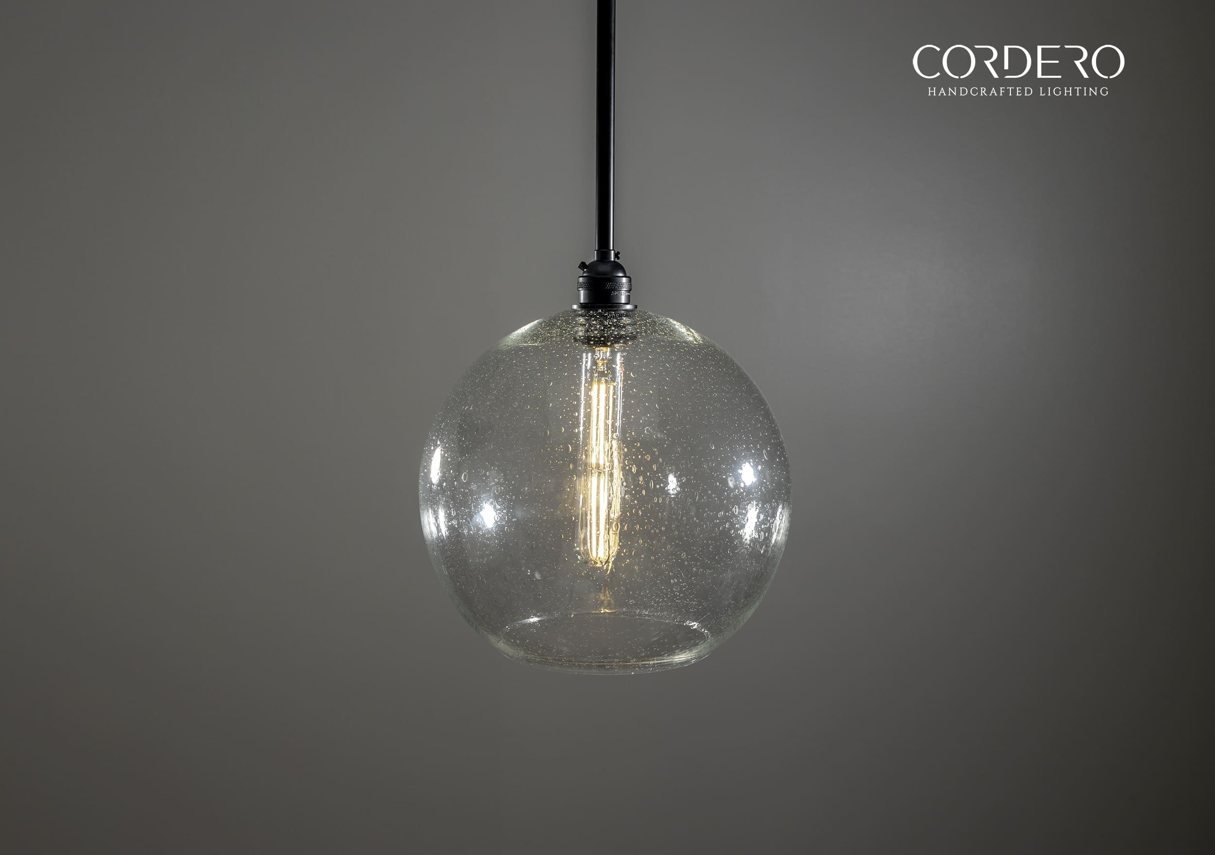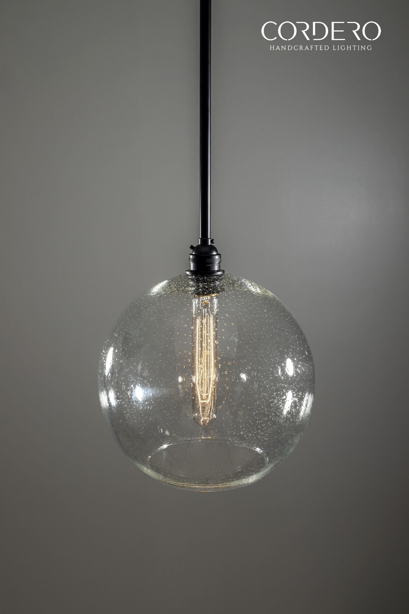 Our handcrafted Seeded Globe Pendant Light Fixture will make a statement in any home or business with its captivating and alluring infused seeded air bubbles infused in three glass globe size options. Through the seeded handblown glass we illuminate your space by offering various bulb options in both incandescent and LED to suite your needs. With an array of metal finishes to choose from, our Seeded Globe Pendant Light Fixture is the quintessential industrial-elegant centerpiece to any space.