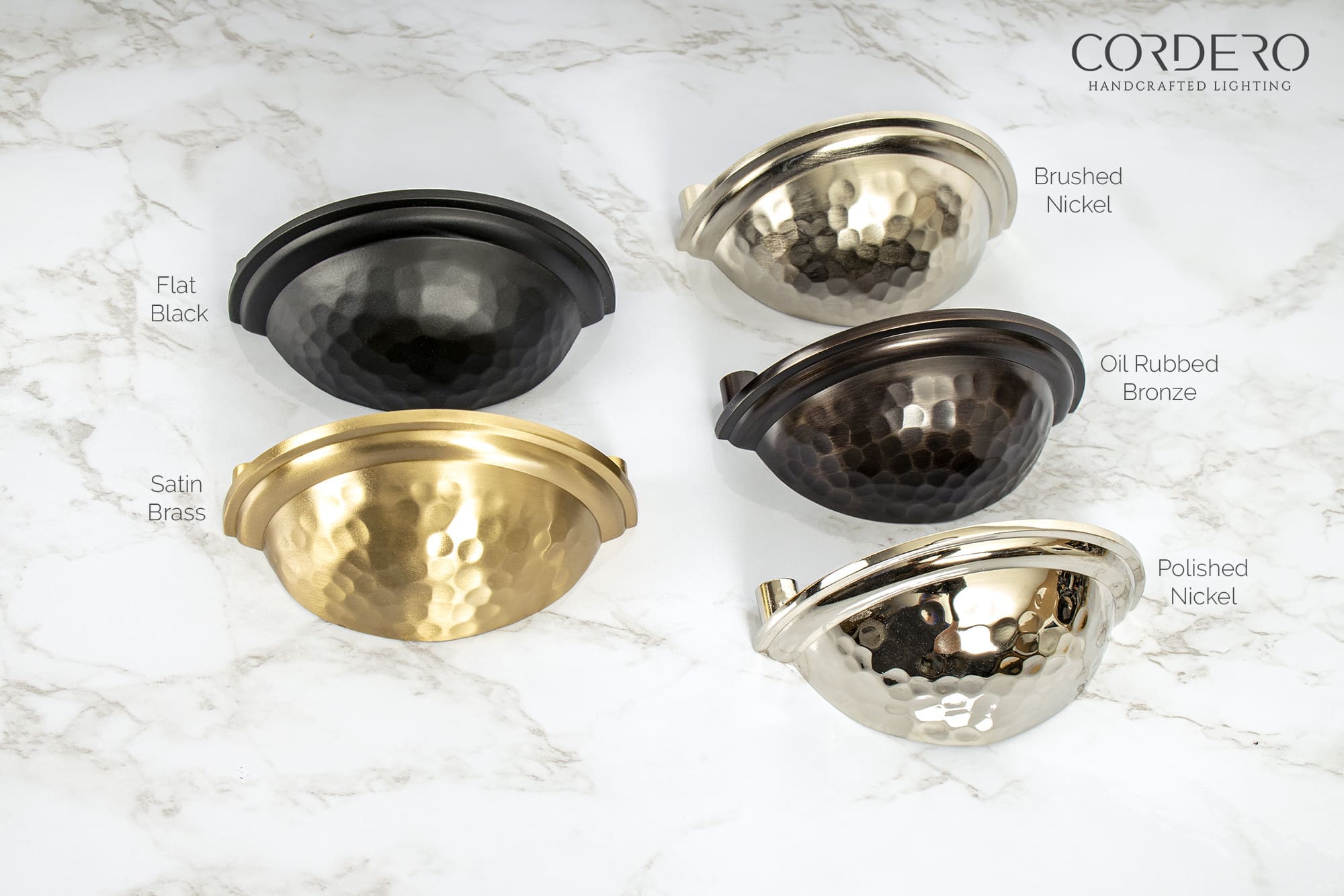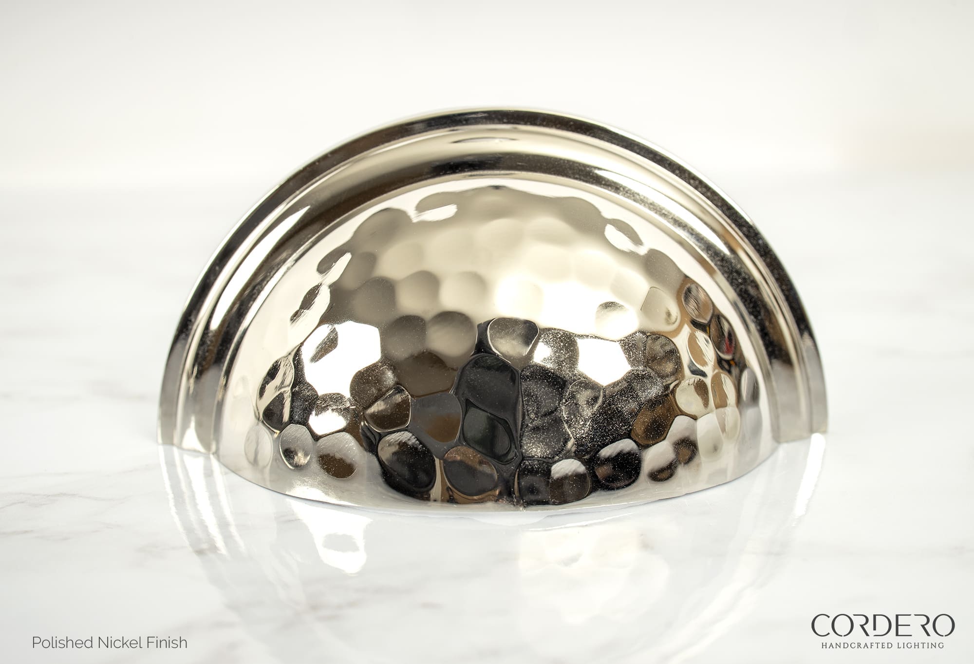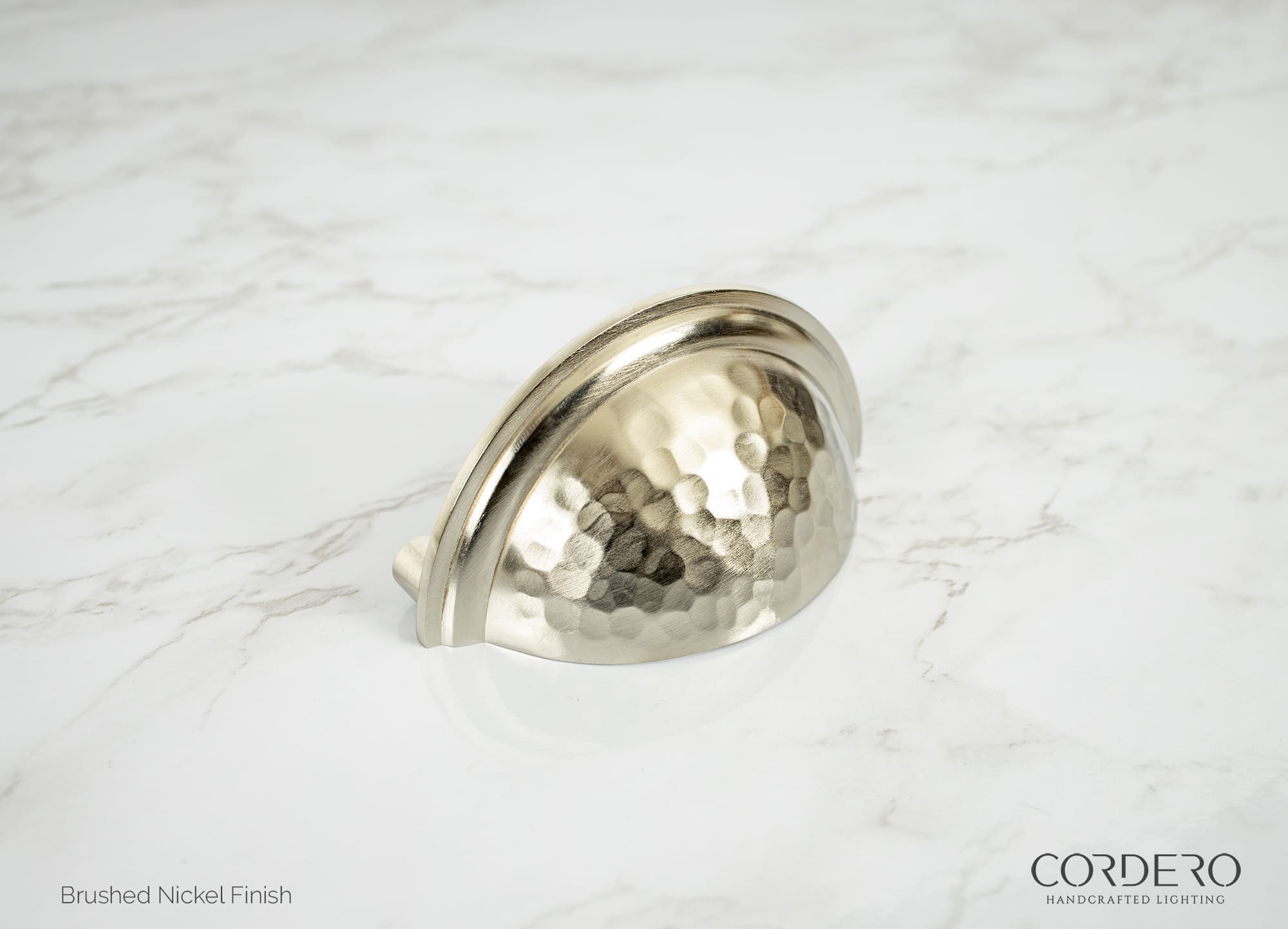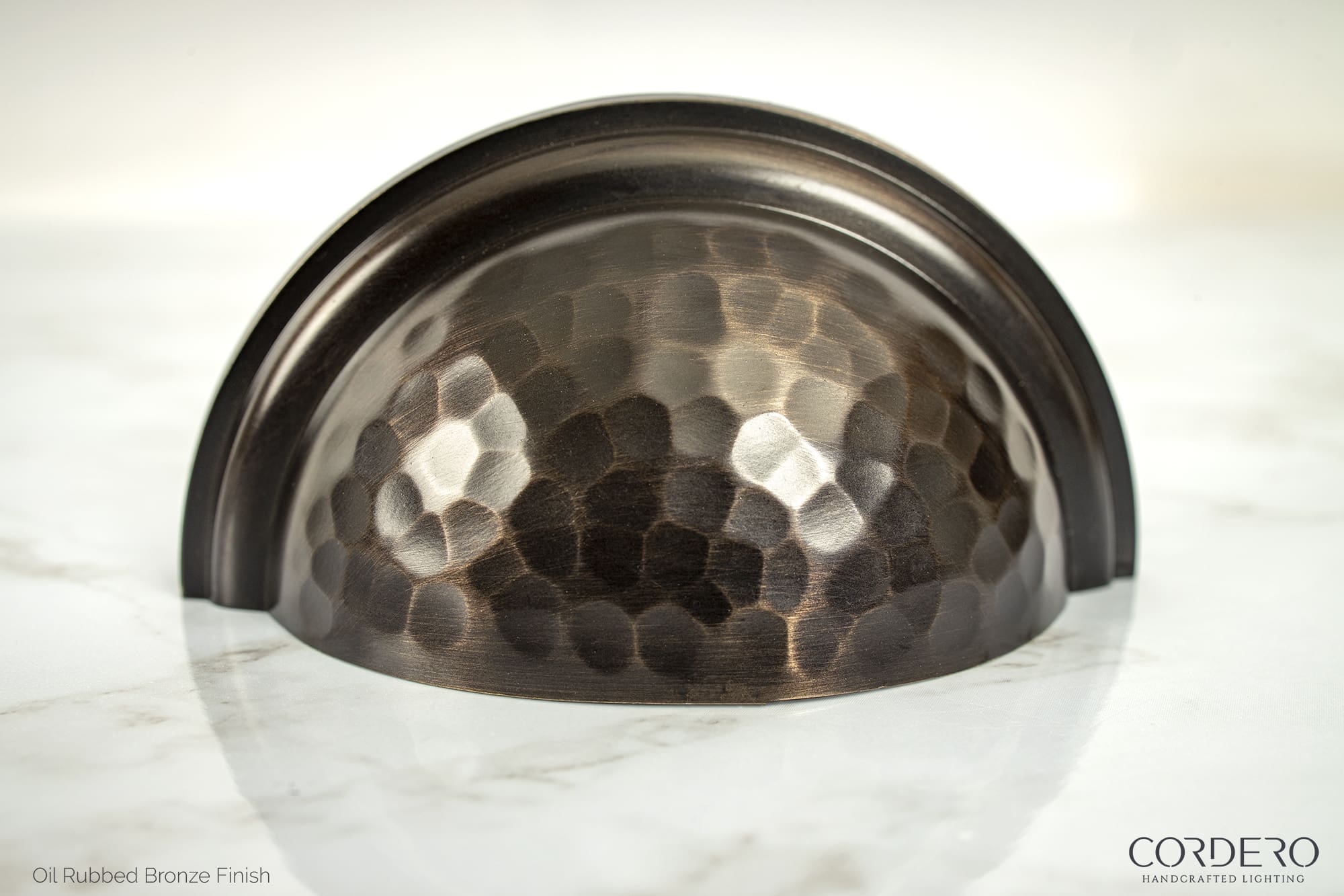 The Ballantyne Hammered Cup Pull is the ultimate in drawer or cabinet “jewelry” with the added benefit of handsome durability for high traffic areas and usage. A combination of strength and beauty, the solid brass hand Hammered Cup Pull comes in 5 finishes. Mounting hardware is included for easy installation.