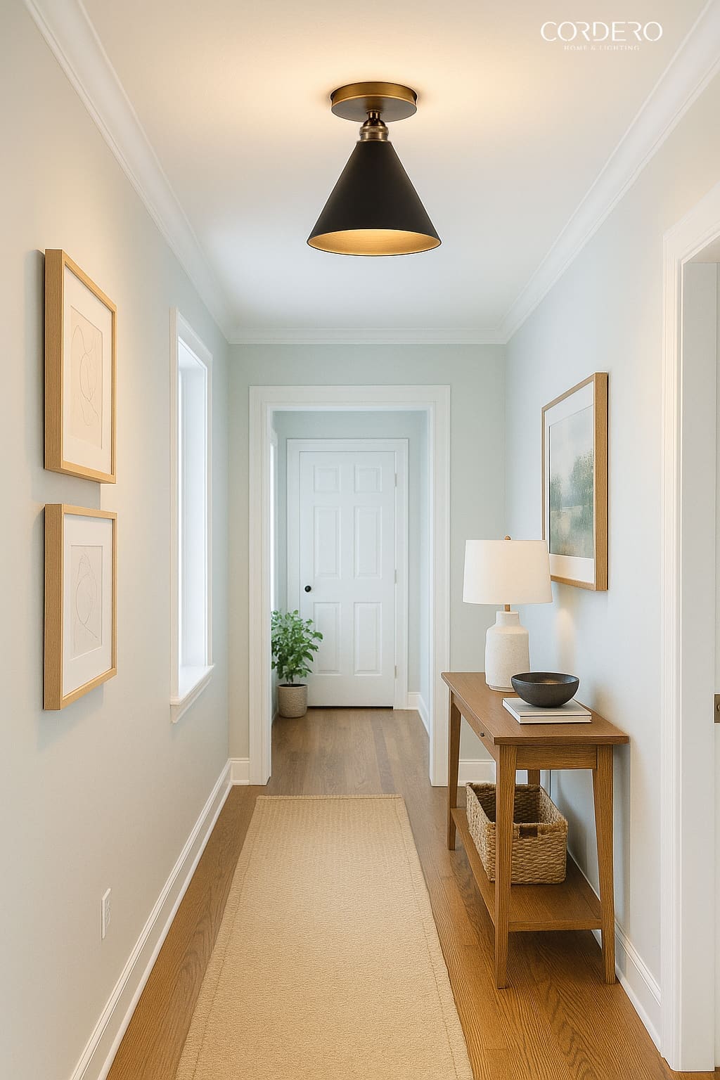 Perfect for residential or commercial use, this semi-flush fixture works beautifully in entryways, kitchens, hallways, bathrooms, offices, or boutique spaces—anywhere you want focused downlighting with elevated design.