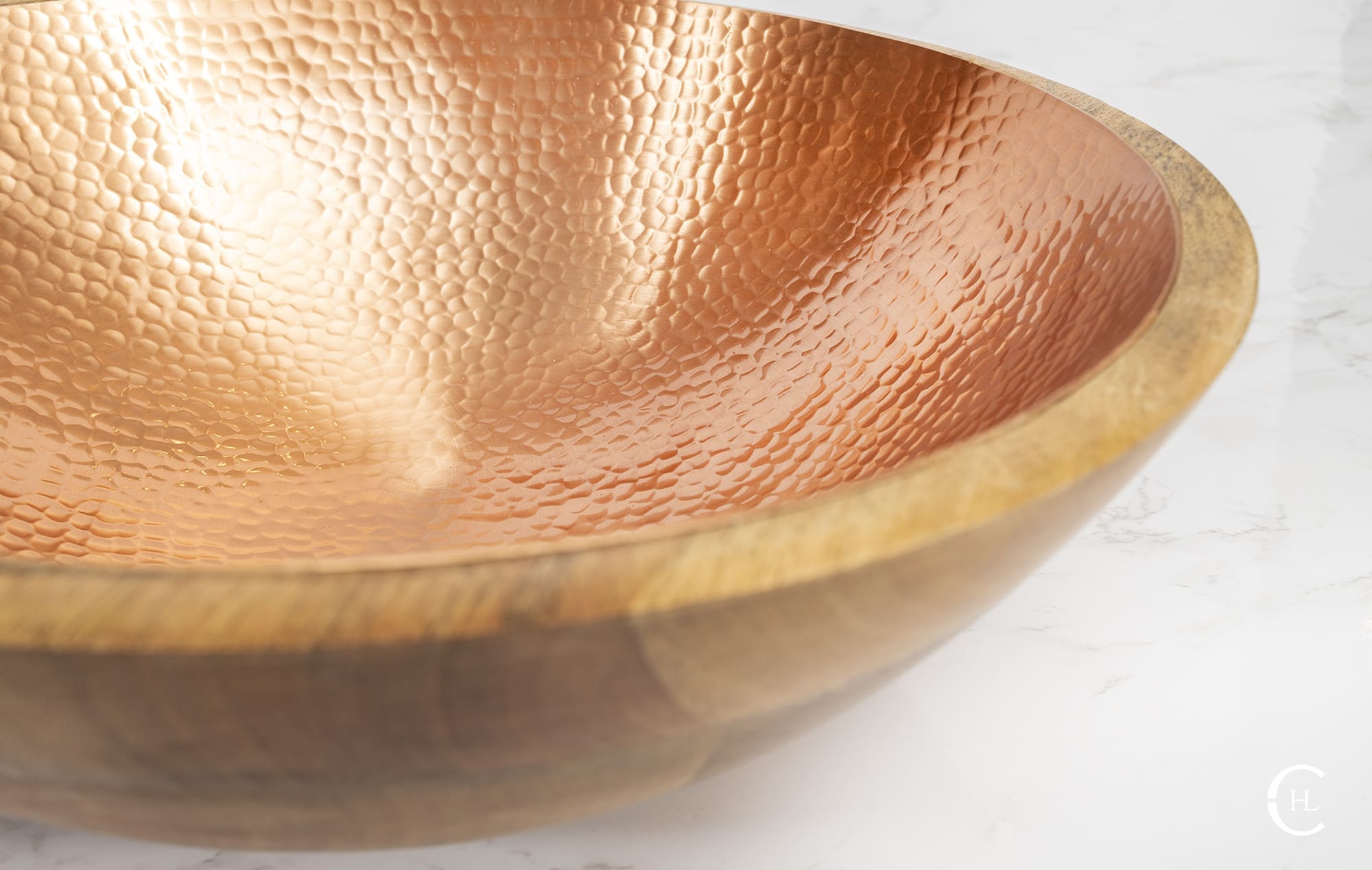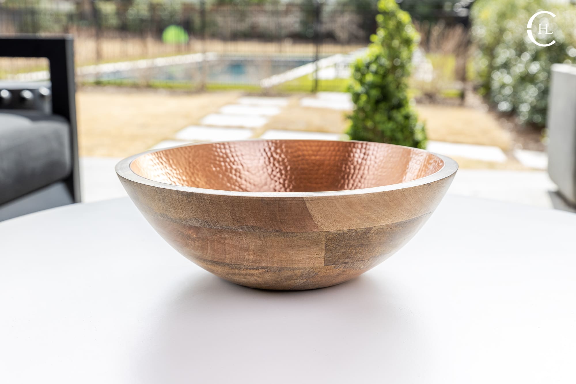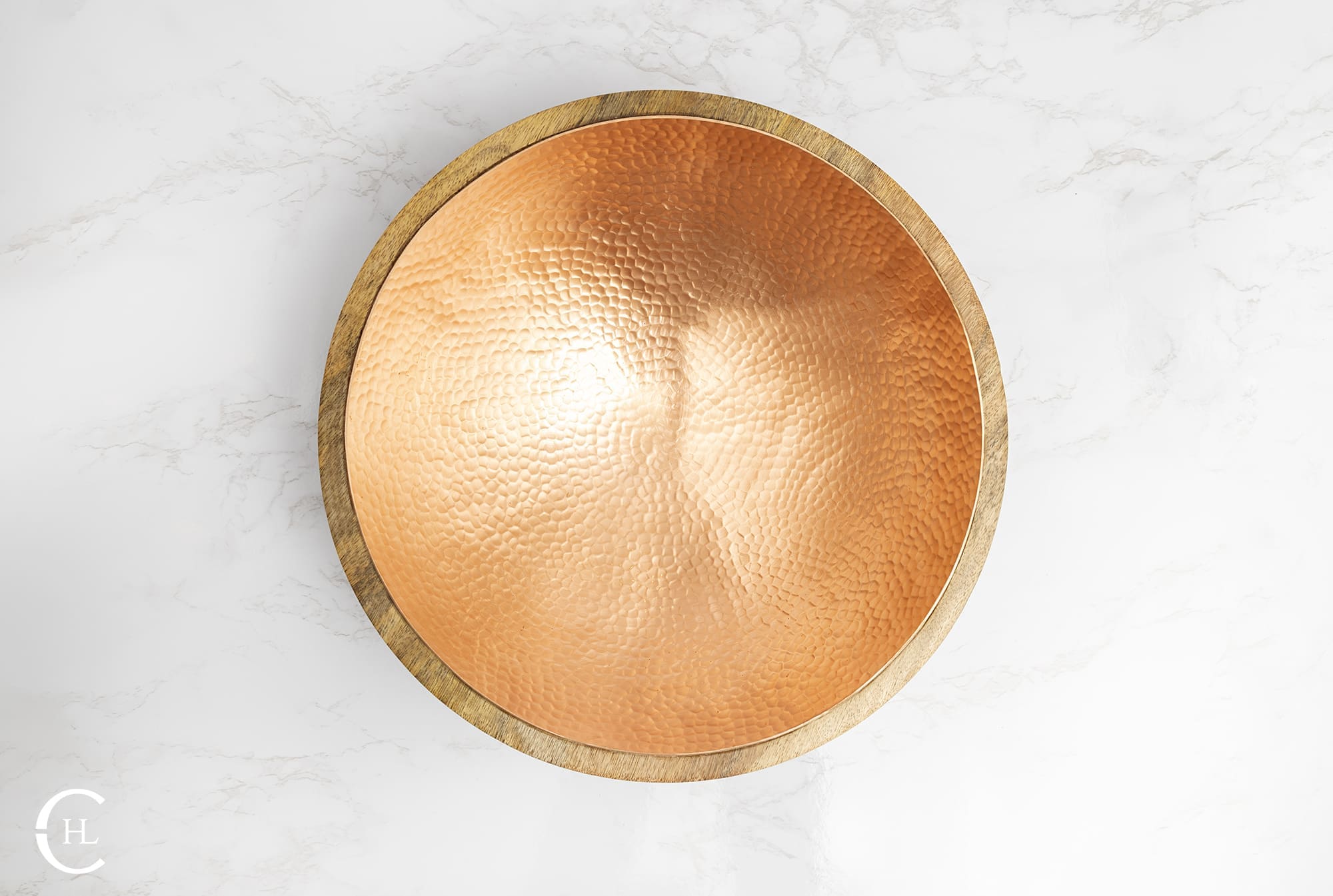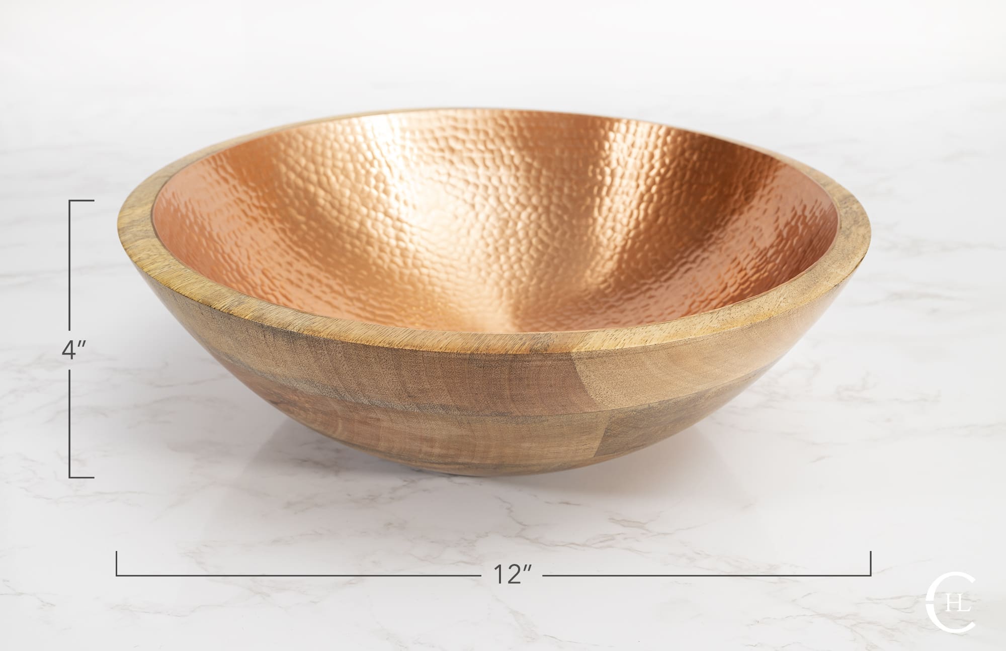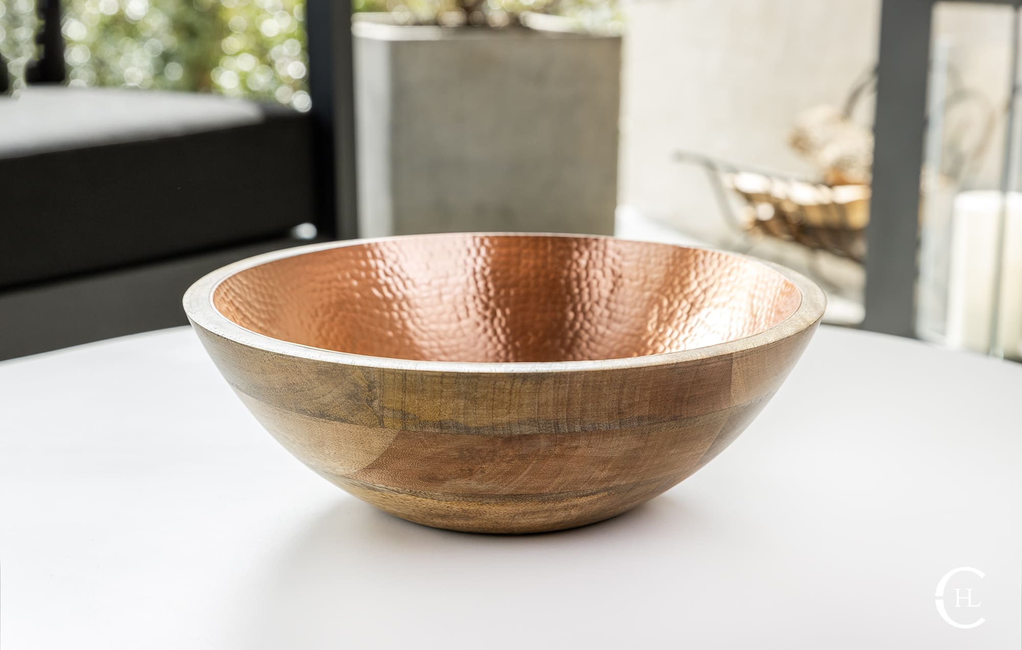 Crafted from sustainably harvested mango wood, the Koura Hammered Bowl is designed to highlight the natural striations within the wood while also displaying a rich bowl interior of hand-hammered solid metal inlay. The artful contrast of earth tone hues and metallic glow allows the Koura Hammered Bowl to stand alone as a dazzling art installation. For further styling options, our hammered bowl, offered with a solid copper or solid brass interior, provides the perfect setting for candles, seasonal accents, faux botanicals and more. The Koura Hammered Bowl displays beautifully on dining room tables, coffee tables, kitchen islands or wherever your countertops need a splash of hand-crafted charm.
