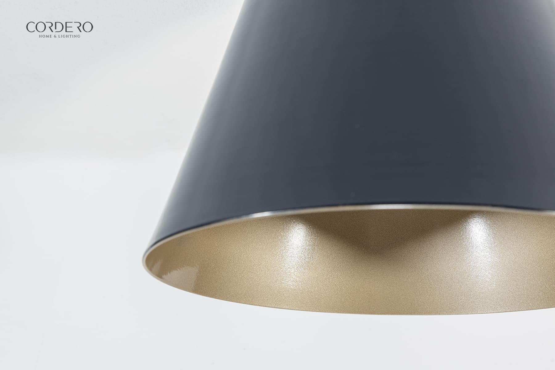 Customization is at the heart of Kova’s design. Alongside this striking Navy finish (shown), cone shades are available in Flat Black, Satin White, Bronze, and Sand Stone. Canopy finishes include Antique Brass (shown), Brushed Brass, Flat Black, Brushed Nickel, and Bronze. You can also personalize the interior of the shade with ten curated finish options to create the ideal glow and contrast.