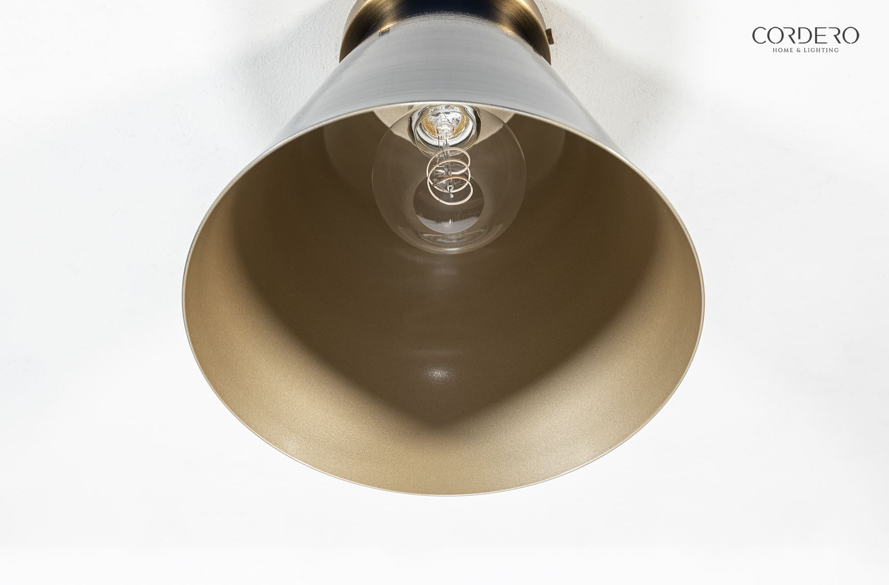 With its sculptural silhouette and confident contrast, The Kova Flush Mount is a statement in understated elegance. This version showcases a rich Navy cone shade paired with a warm Antique Brass canopy and a Light Gold interior—an elevated combination that adds both depth and warmth to any room.