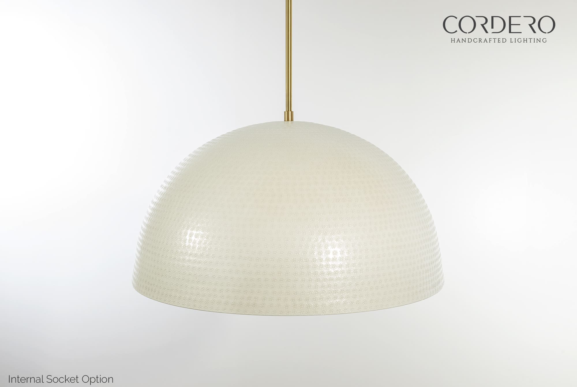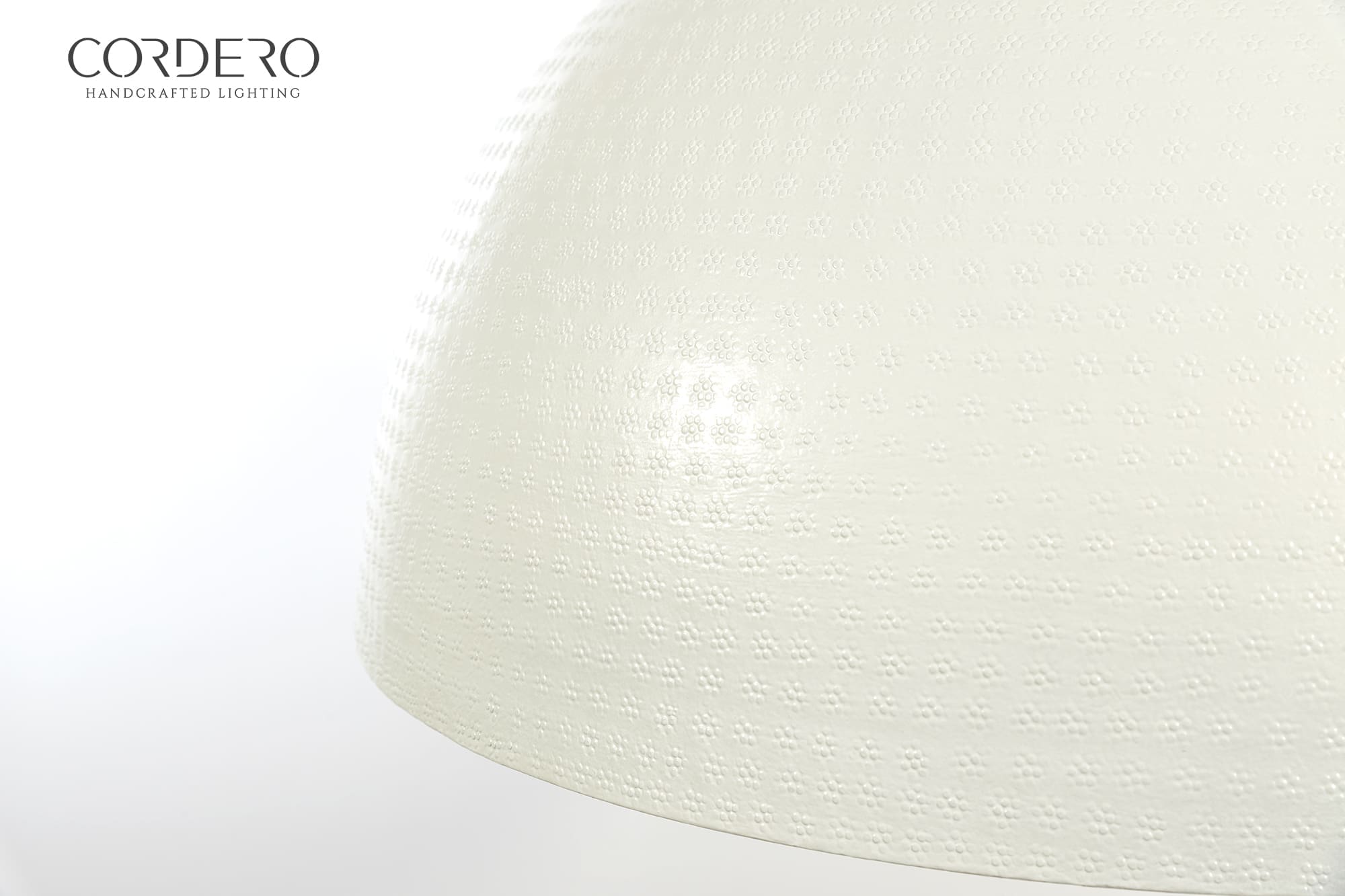 With brilliant metallic curves and rich hand-hammered texture, the White Dominion Hammered Dome is an unmistakably bold yet elegant lighting statement ready to complement your next home or business. The Dominion’s form and finish create a radiant glow that swims around the hammered interior then gently spills across your dining table or home setting. Elevate your next space with this resplendence mix of beauty and function.